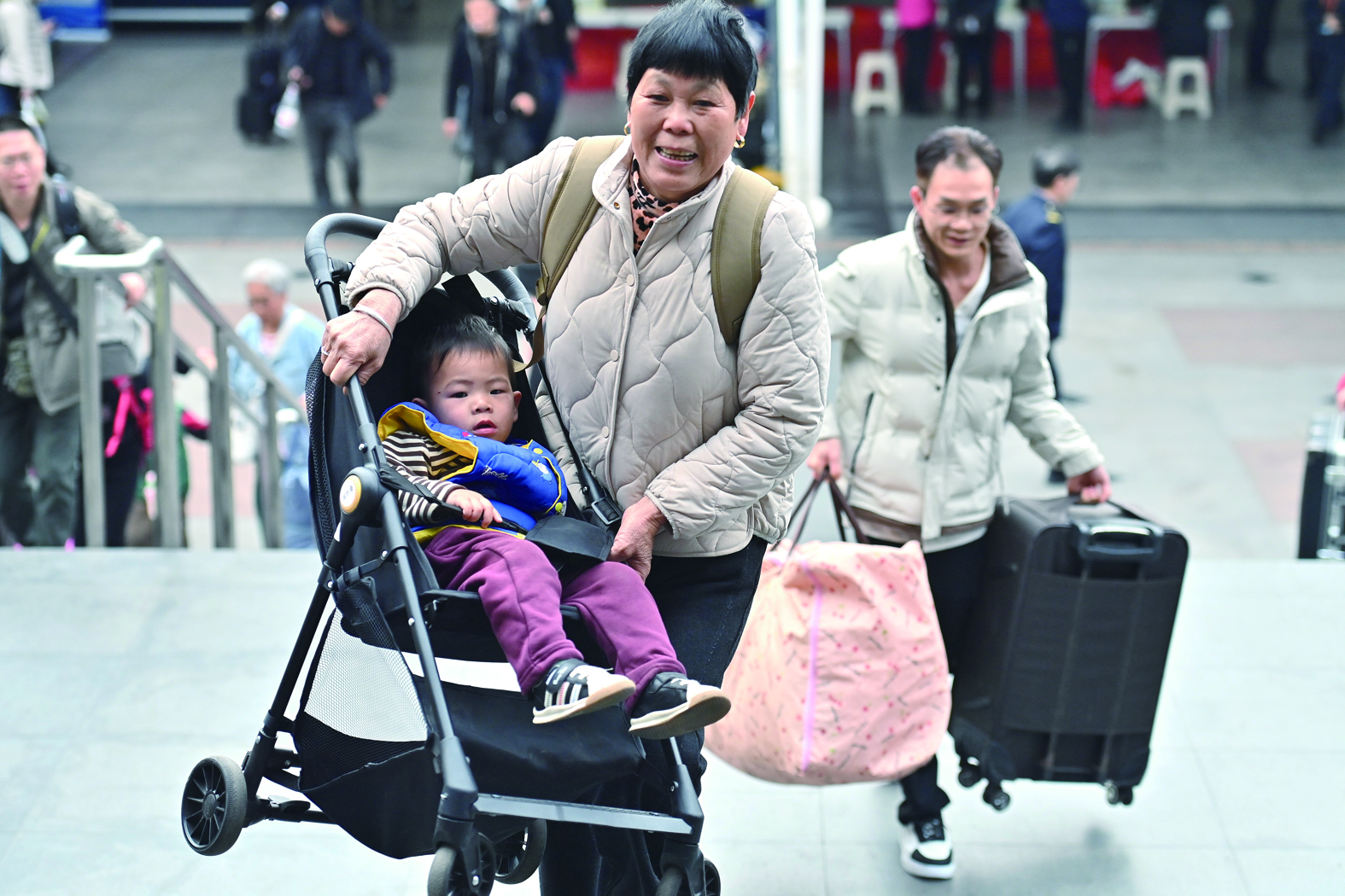 2月2日,旅客在广西南宁火车站准备进站乘车。 新华社记者 周华 摄