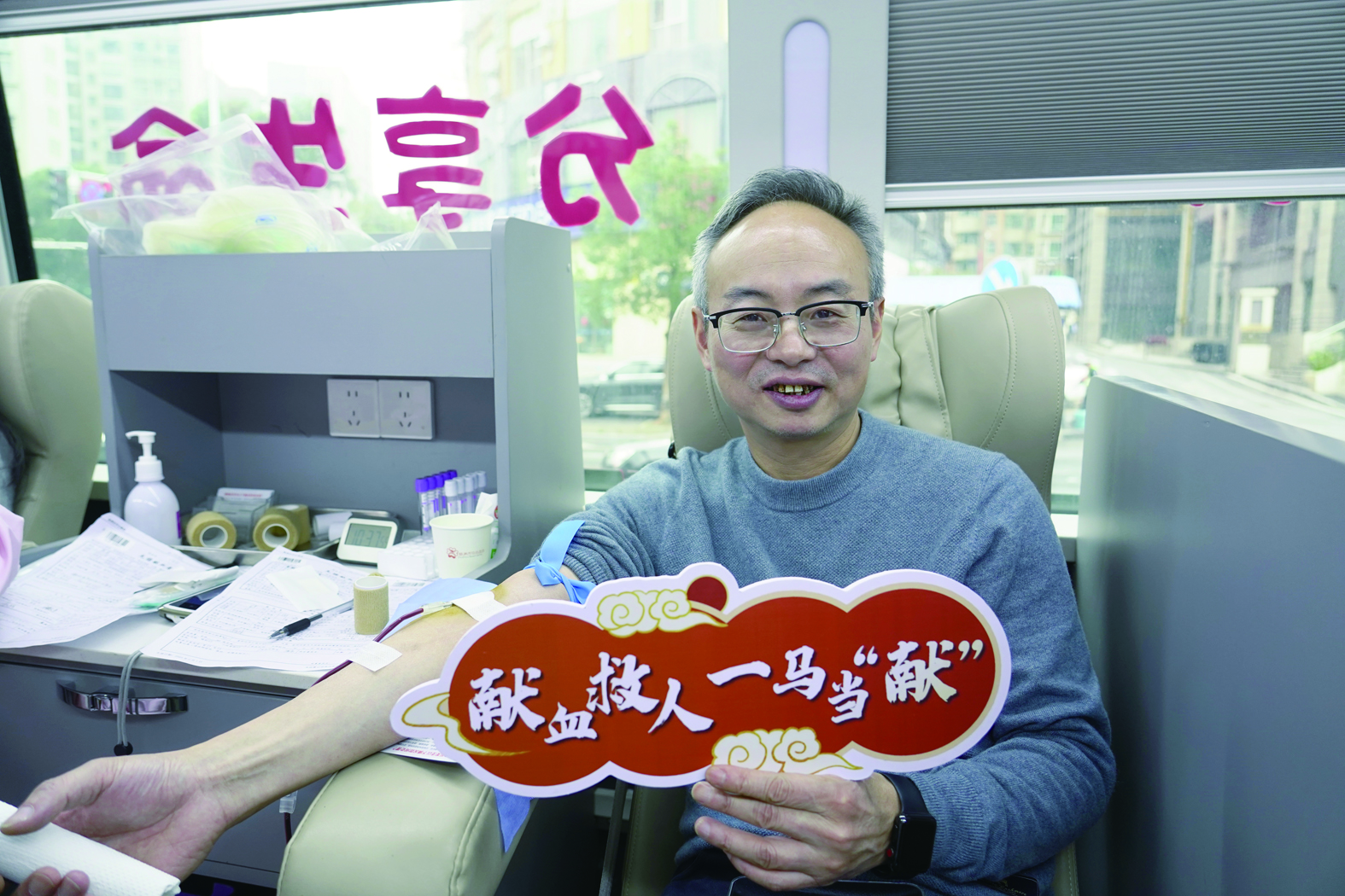来自浙江的项亨顶经常往返于浙江与株洲两地工作。尽管奔波忙碌,他仍坚持无偿献血十余次。“只要有机会,我就会参加。公司组织献血,为我们提供了一个难得的便利和平台。”这次,他不仅自己挽袖献血,还带来了女儿。“带孩子一起参与,是想让她懂得奉献的意义。”项亨顶笑着说道。