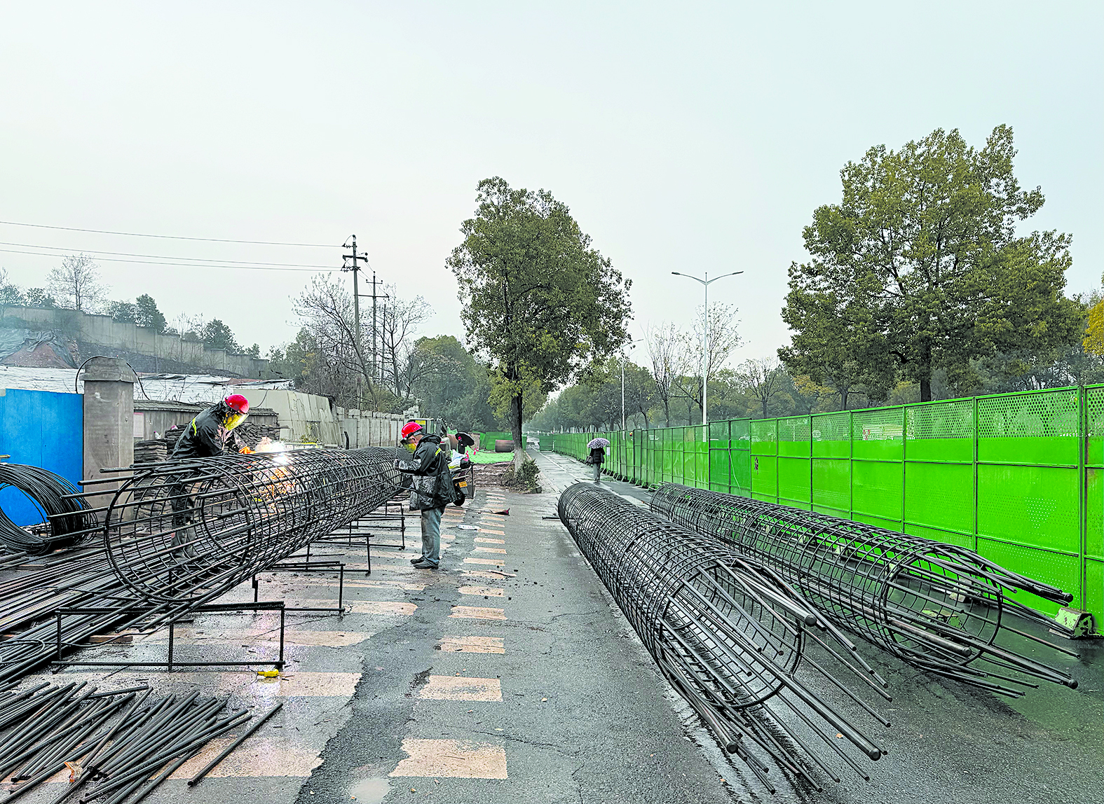 建成后的丁山路口人行天桥,将进一步便利沿线居民安全、便捷通行,完善区域慢行交通系统。图为项目施工现场。