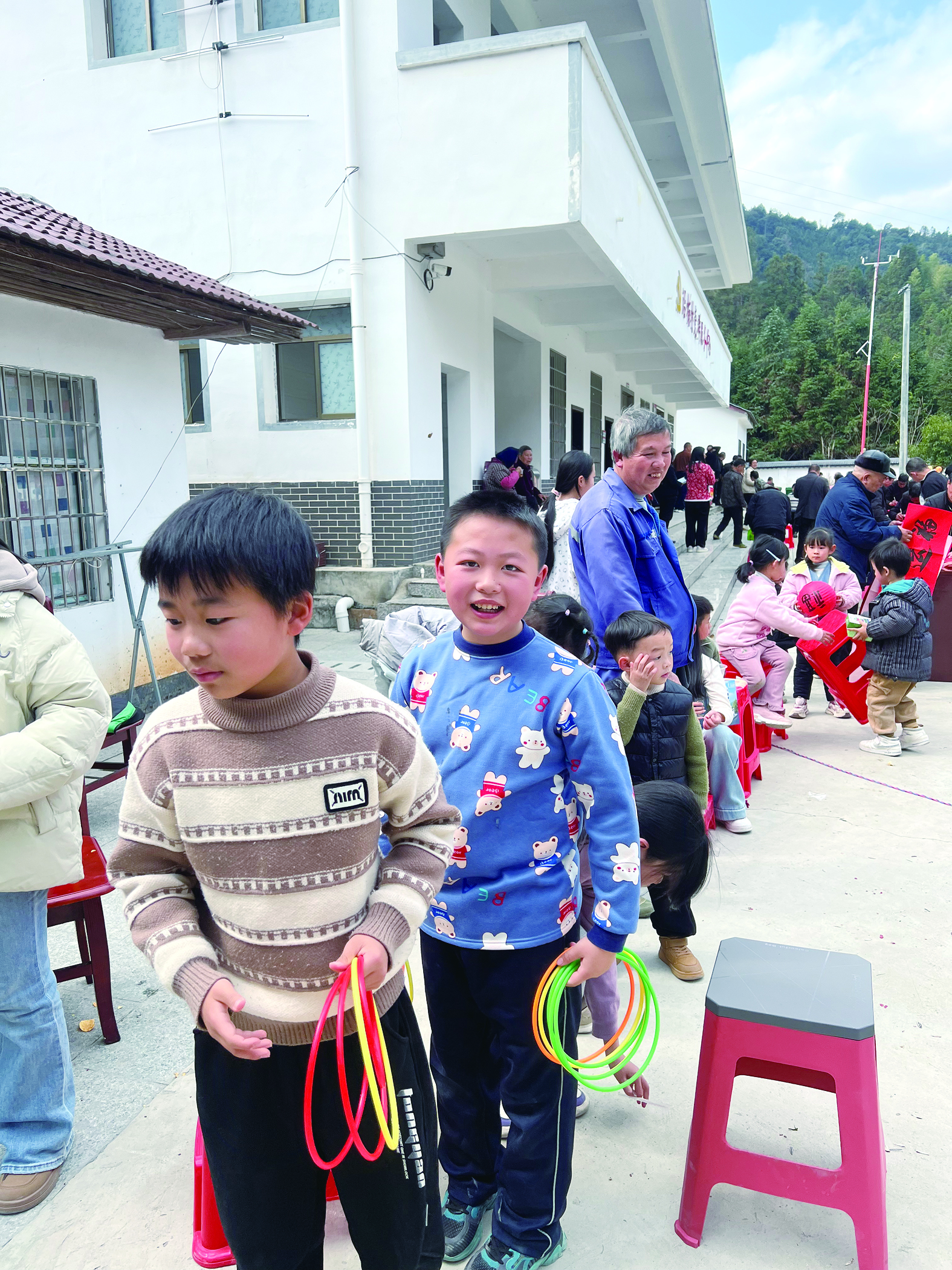 精彩的文艺表演拉开了活动序幕,随后,拔河比赛、挑担子比赛都趣味横生。最受孩子们欢迎的是套圈区,五年级小学生沈浩将牛奶、文具等礼物收入囊中,小脸笑开了花。“比过年还高兴!”他兴奋地举着奖品说道。另一边,书法爱好者笔走龙蛇,一副副寄托美好祝愿的春联墨迹未干就被村民领走,大红对联映红了一张张笑脸。