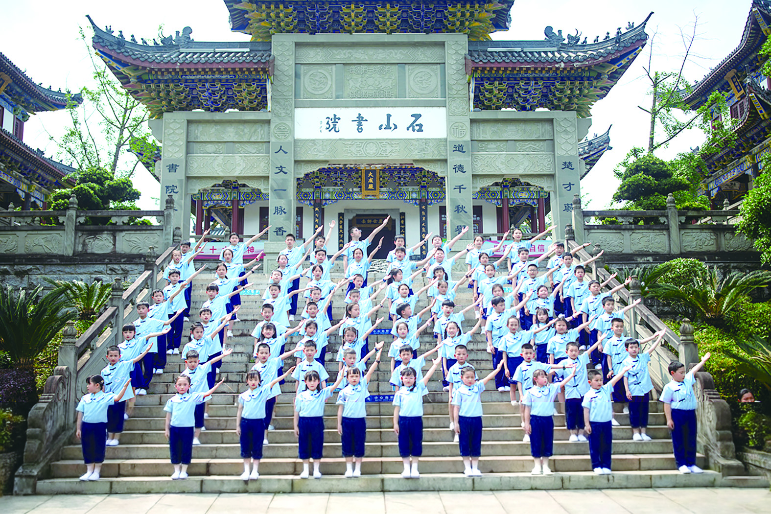 学生打卡石山书院。 图片由攸县县委宣传部提供