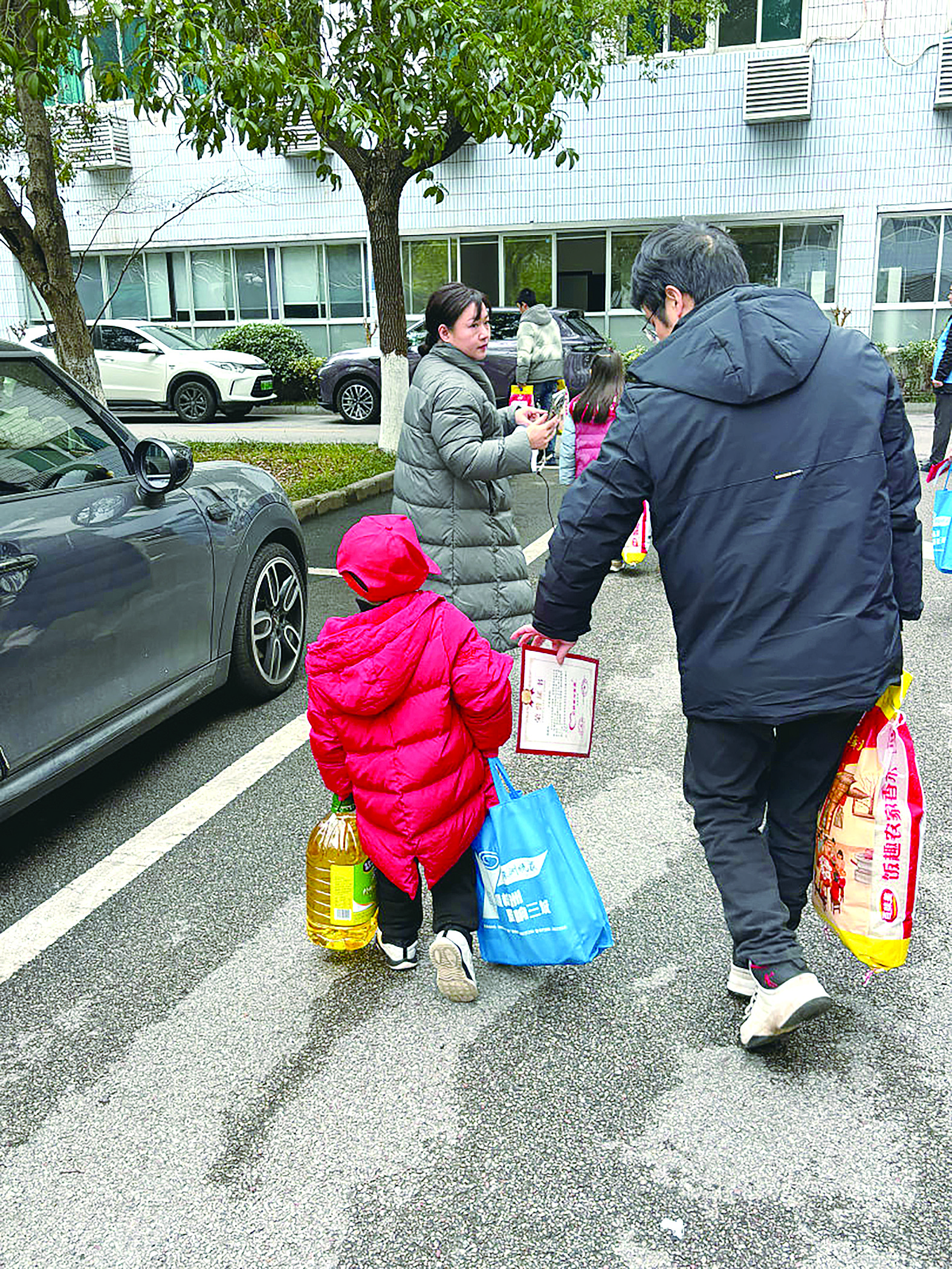 现场志愿者早已忙活开来,核对走访名单、整理爱心物资、引导队伍有序集结。8岁的小记者子墨凑到志愿者身边想帮忙搬挂面,被志愿者轻轻拉住后,仰着小脑袋说:“今天要去看一位奶奶,我想把自己画的贺卡送给她,还想陪她聊聊天。”本次活动中,小记者爱心家庭均采取一对一上门慰问的形式。家长们随行相伴,或帮孩子提年货,或轻声叮嘱“见长辈主动问好”,亲子间的温馨互动,让这份爱心更有温度。