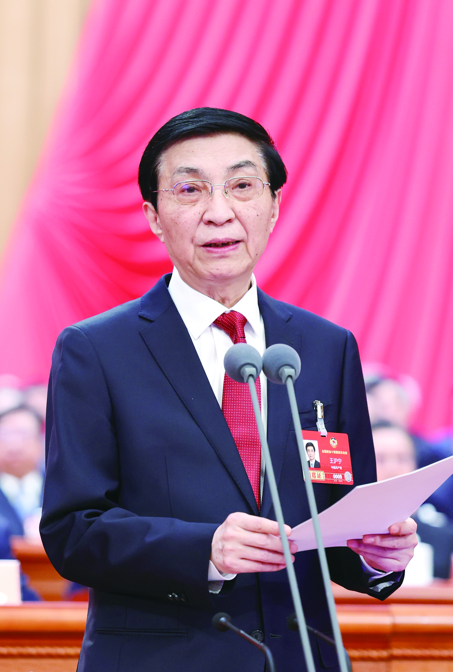 全国政协主席王沪宁主持闭幕会并讲话。新华社记者/黄敬文 摄