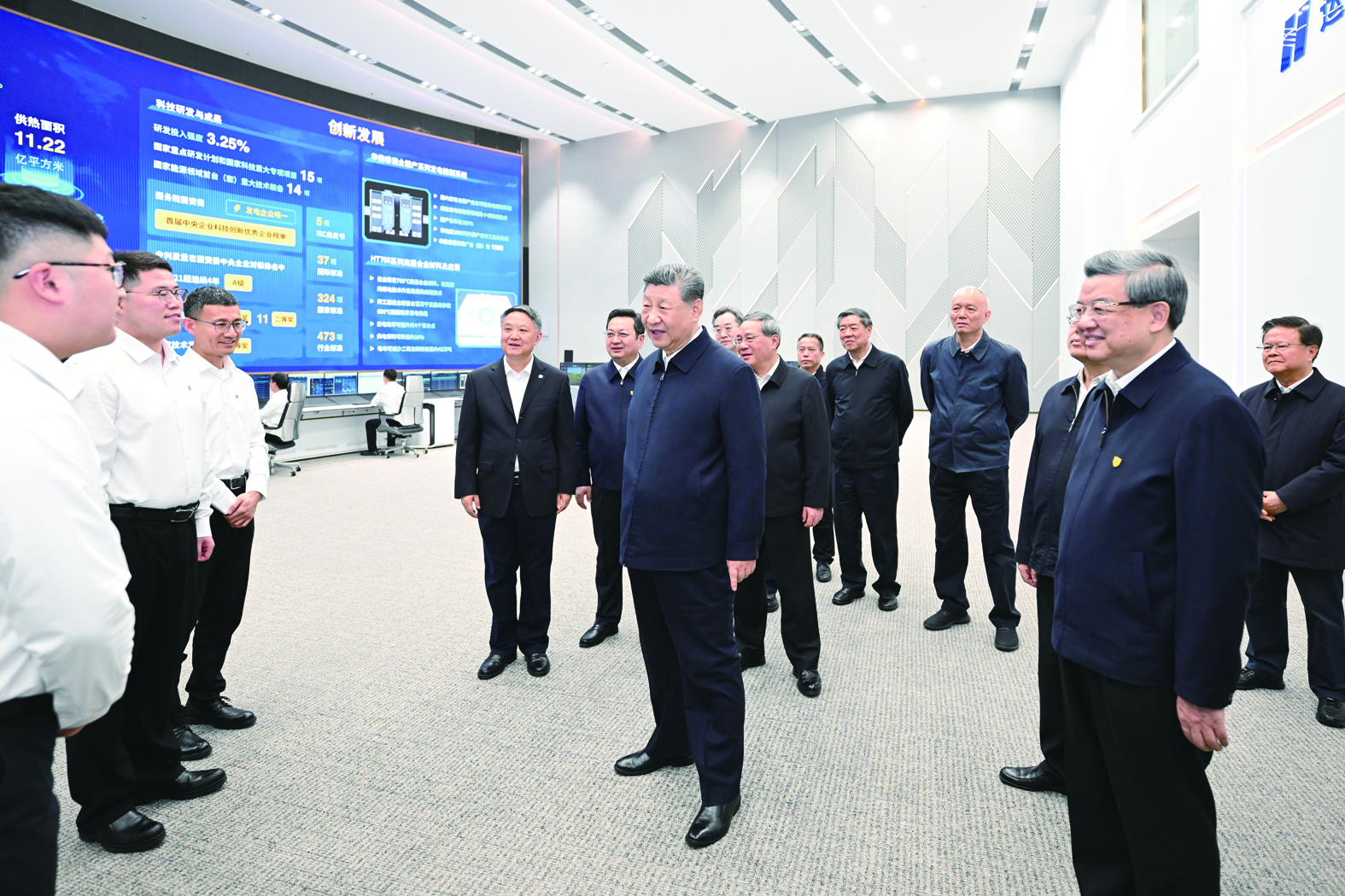随后,习近平来到中国华能集团有限公司考察。2025年10月,华能集团总部及相关子公司1000多名员工迁驻雄安新区。习近平走进企业运营监控与应急指挥中心,听取企业搬迁、产业布局、创新发展等情况介绍,察看企业实时运营数据和远程图像。他强调,要以迁入雄安新区为契机,激发企业干部职工创新创业的积极性主动性,为加快建设新型能源体系、建设能源强国作出新贡献。