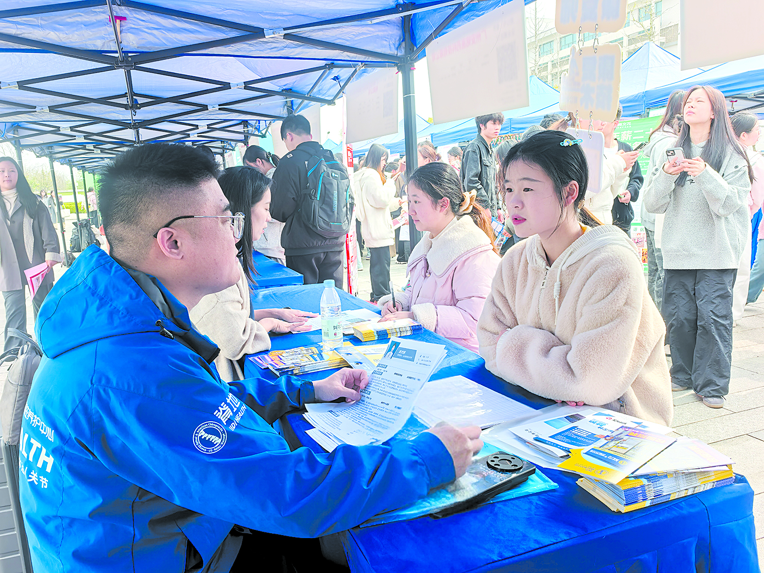 招聘会现场,学生与企业代表面对面精准了解需求。记者/孙晓静 摄