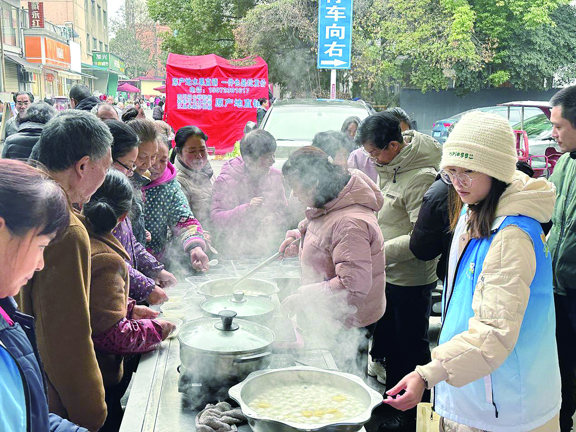 除了玩得嗨,活动还得吃得甜。社区贴心地准备了热气腾腾的汤圆,大家围坐在一起,品尝着软糯的汤圆,聊着家长里短,话着幸福生活。一碗汤圆下肚,暖了胃,更暖了心。