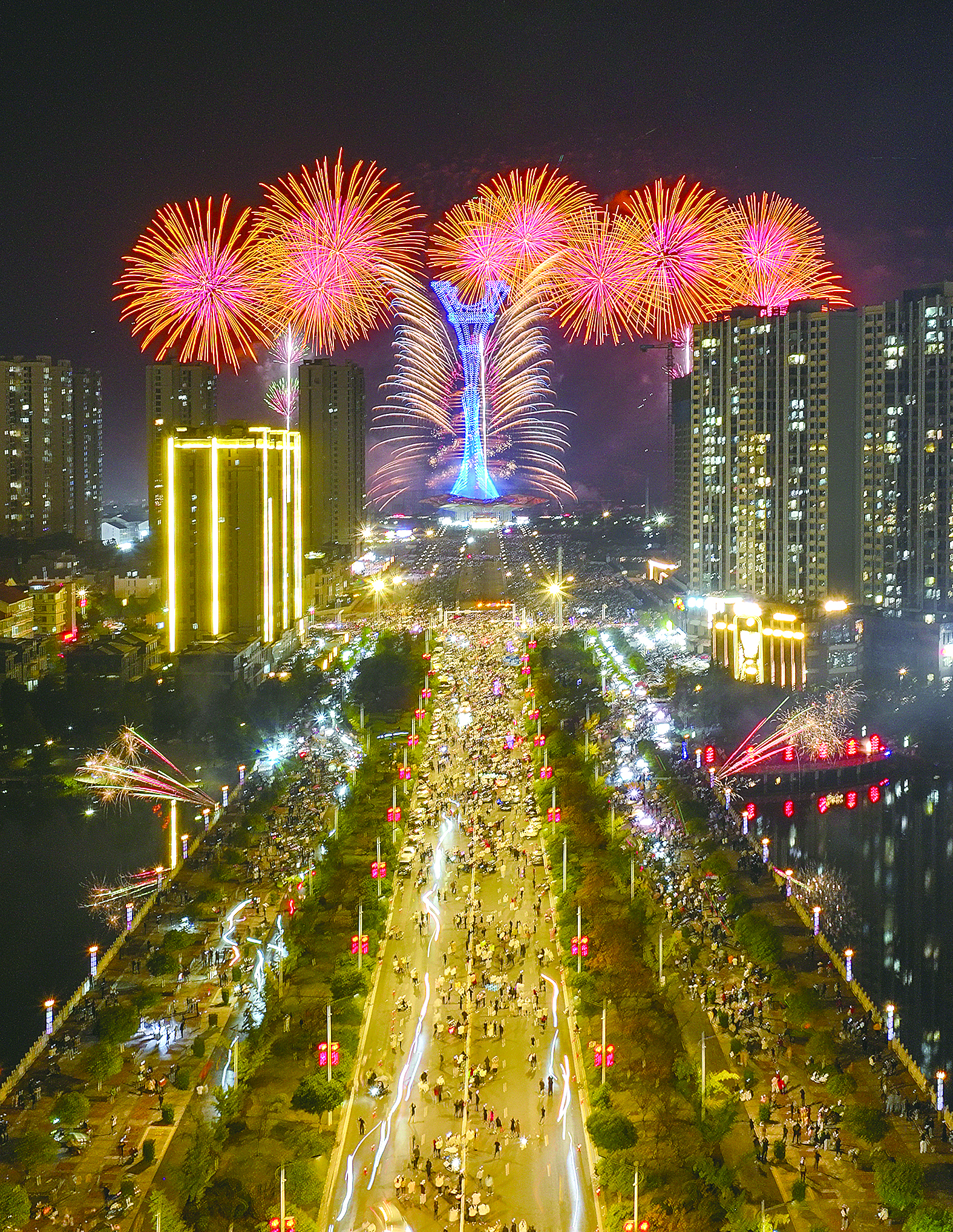 浏阳周末焰火吸引了众多游客。 彭红霞 摄
