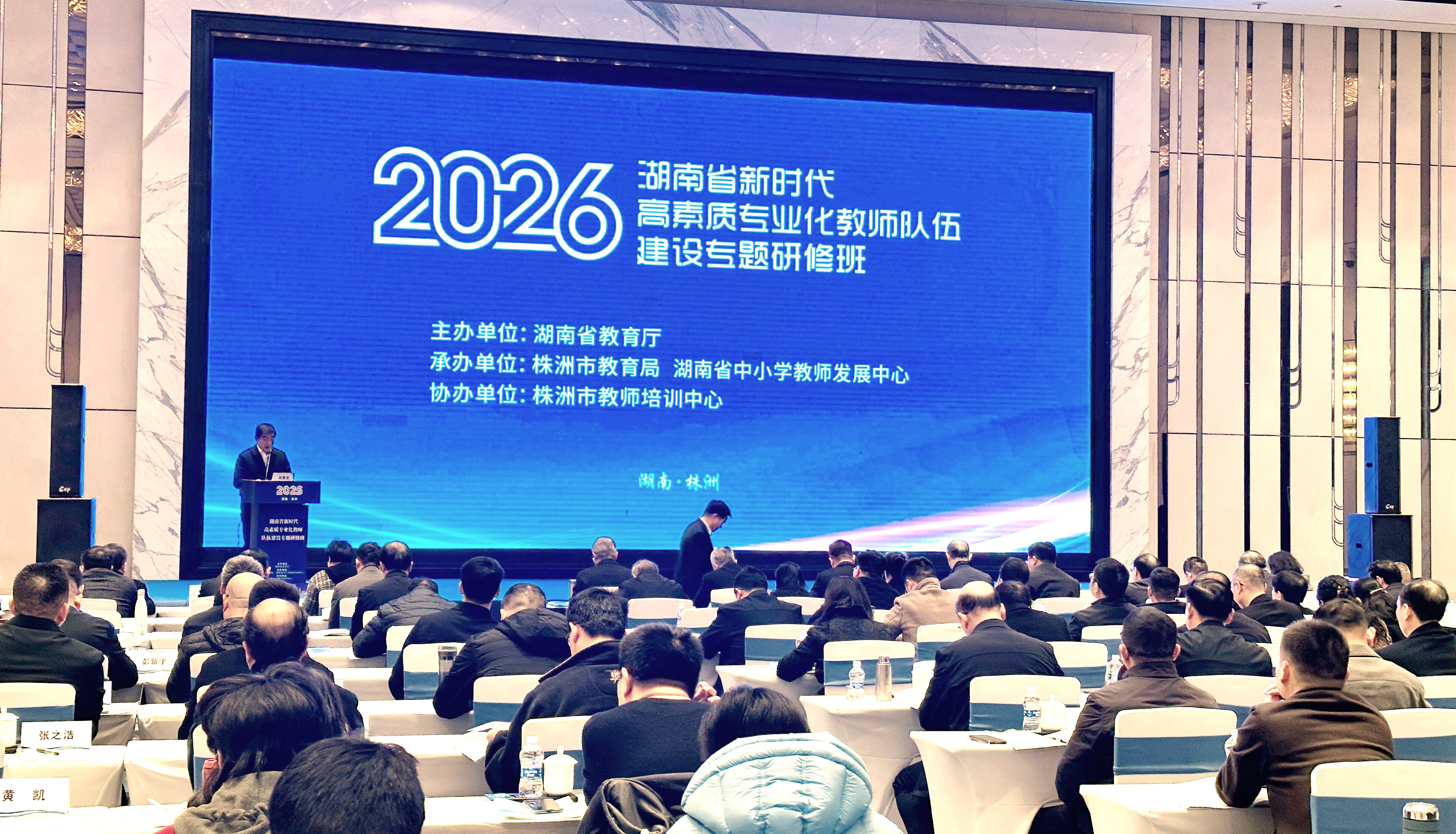 3月11日至12日,2026年湖南省新时代高素质专业化教师队伍建设专题研修班在我市开班。来自全省各中小学、教育局及本科高校、高职院校的相关负责人,围绕人工智能赋能教师发展、基础教育“双名计划”、学校人才队伍建设等核心议题开展专题报告与经验分享。