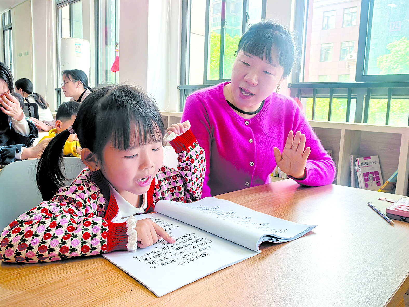 另一边,南塘社区的课堂则是孩子们的“成长加油站”。硬笔书法课上,孩子们坐得笔直,老师逐字批改,纠正握笔、规范书写;松鼠AI自习室里,老师全程陪学、答疑解惑;亲子国学诵读课上,家长和孩子围坐共读,书声琅琅,温情满满。“体能课是最受欢迎的,篮球、羽毛球都能选,还有中考专项训练,孩子锻炼了身体,我们家长也省心。”栗雨街道相关负责人介绍。