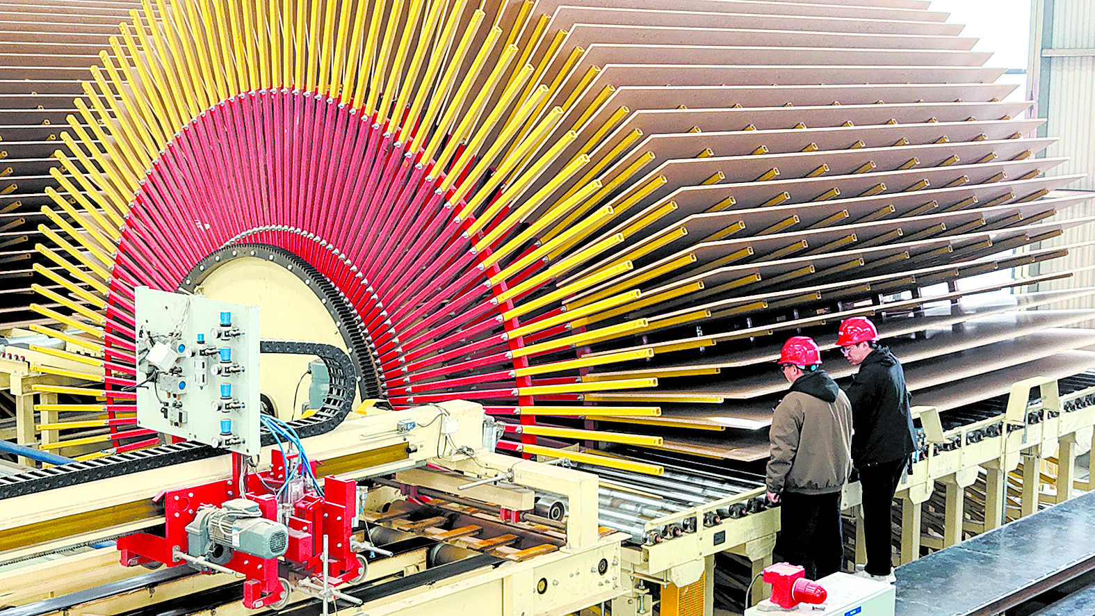 工人在山东省临沂市平邑县一家木业企业板材生产线上工作(2026年3月16日摄)。 新华社发 武纪全 摄