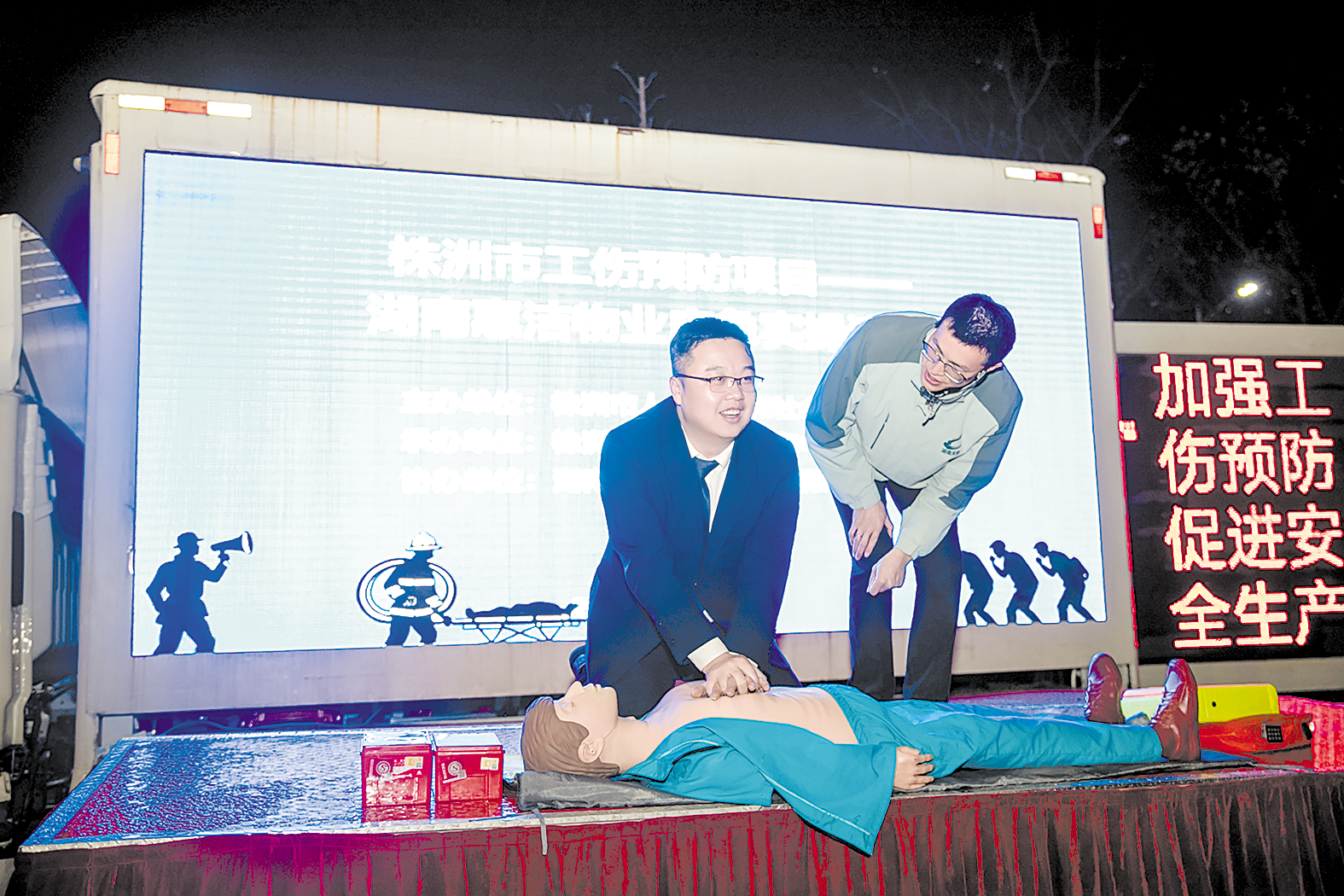 近日,株洲市工伤预防培训活动在湖南惠洁物业管理有限公司举行。培训分为理论教学与实操演练两部分,物业员工及小区居民现场学习了心肺复苏、灭火器使用、火灾逃生与组织群众疏散等知识与技能。