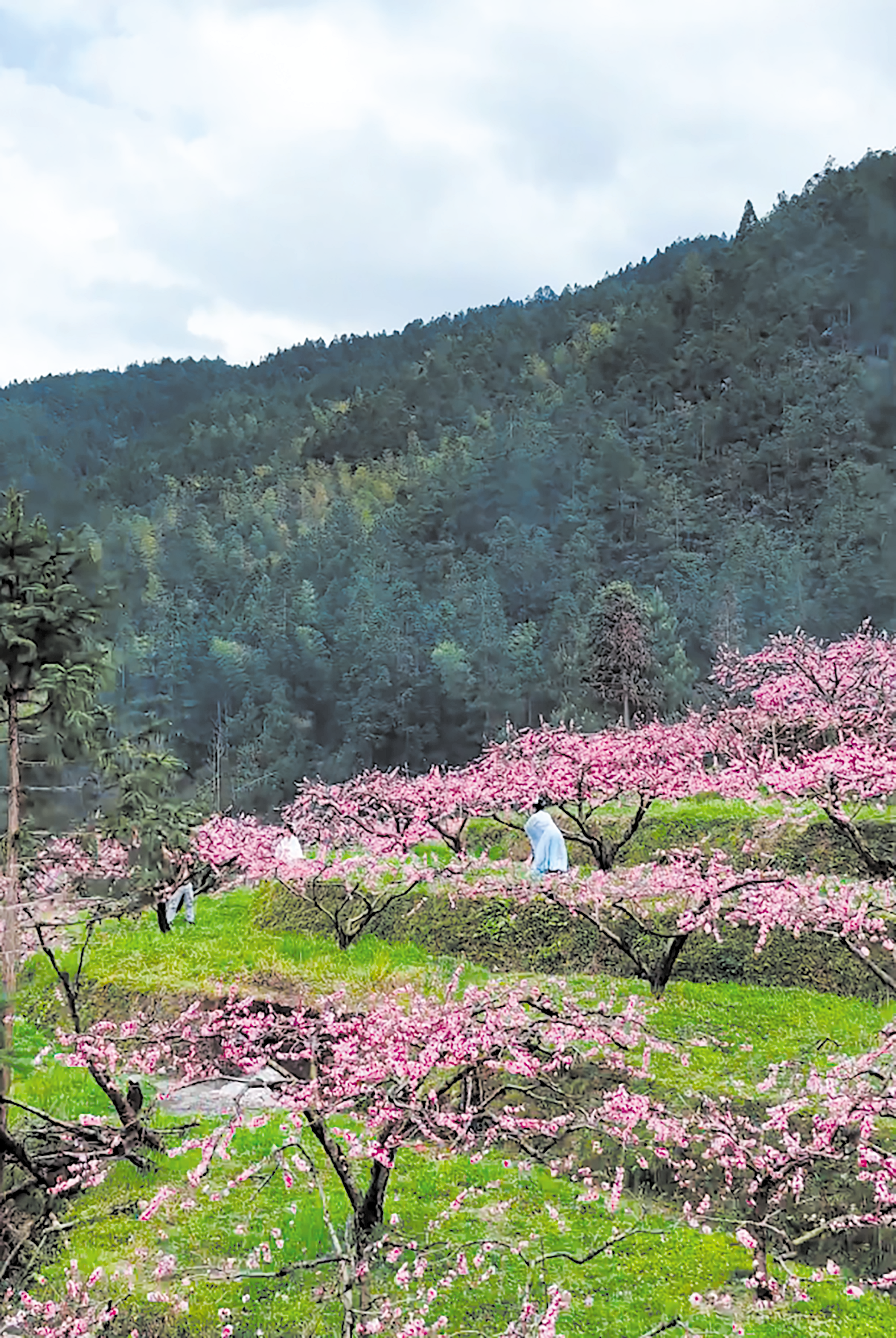 从空中俯瞰,盛开的桃林如霞似锦,铺满山间田野;置身其中,淡淡花香沁人心脾,仿佛置身于世外桃源。