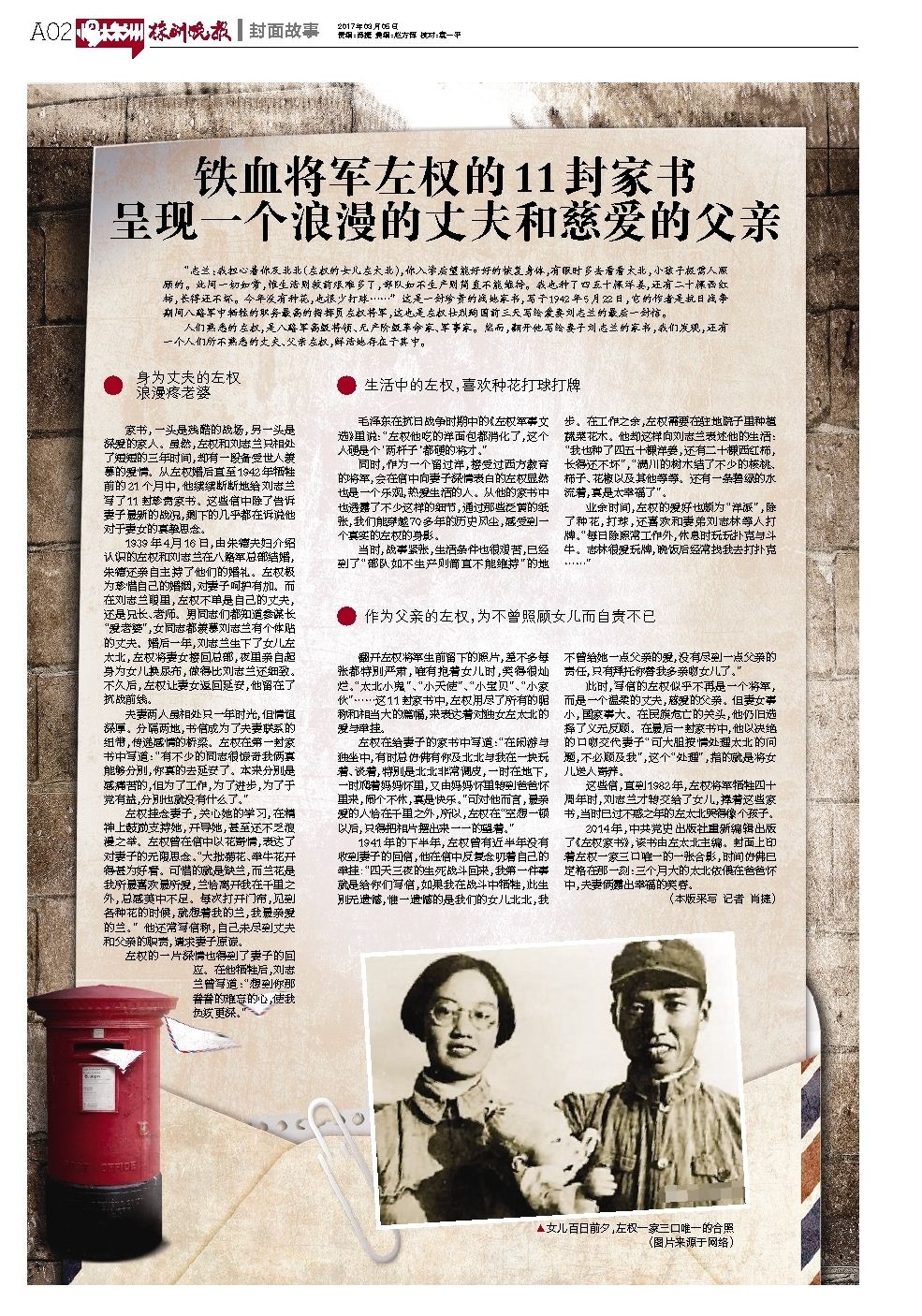 铁血将军左权的11封家书 呈现一个浪漫的丈夫和慈爱的父亲