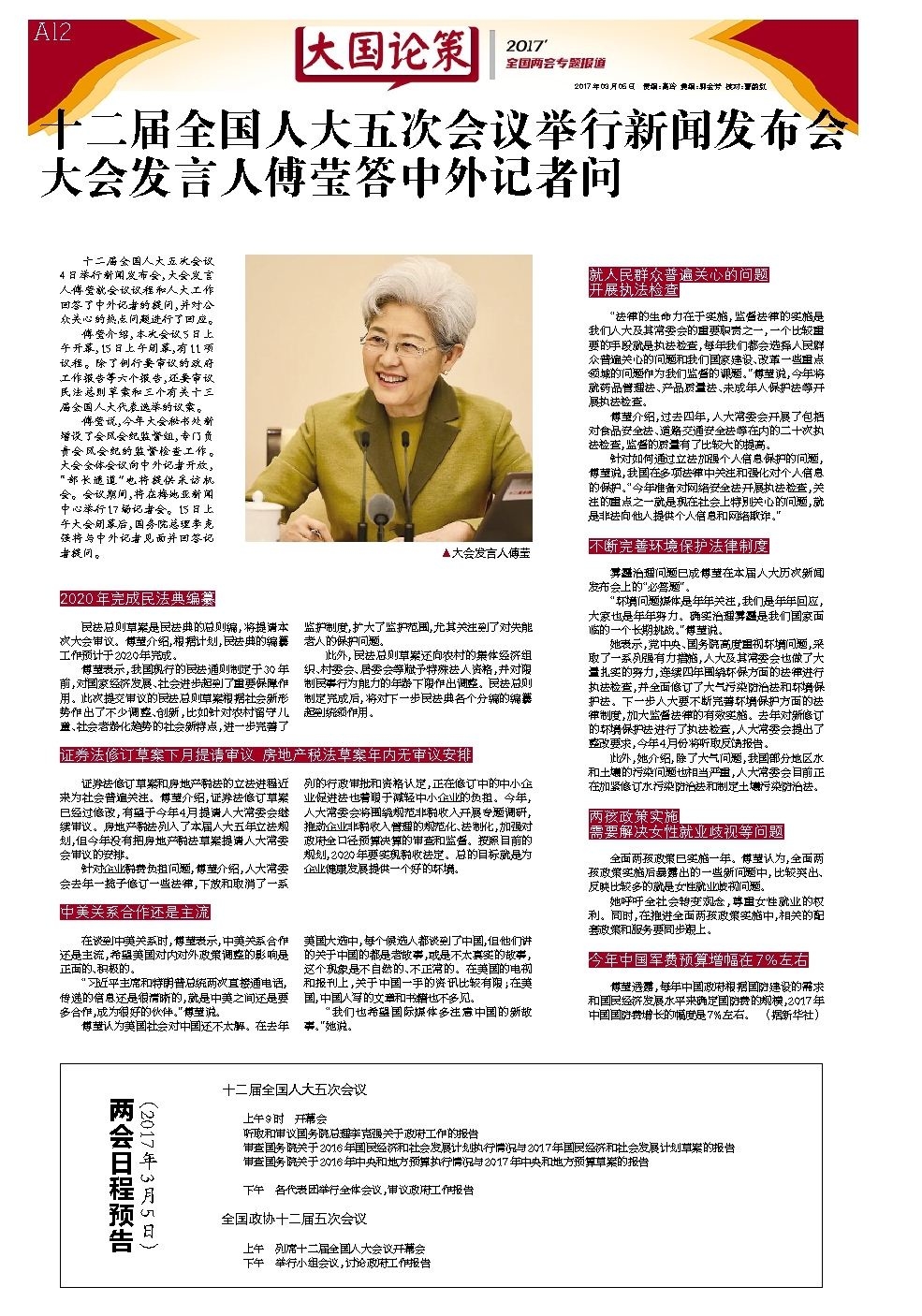 十二届全国人大五次会议举行新闻发布会 大会发言人傅莹答中外记者问