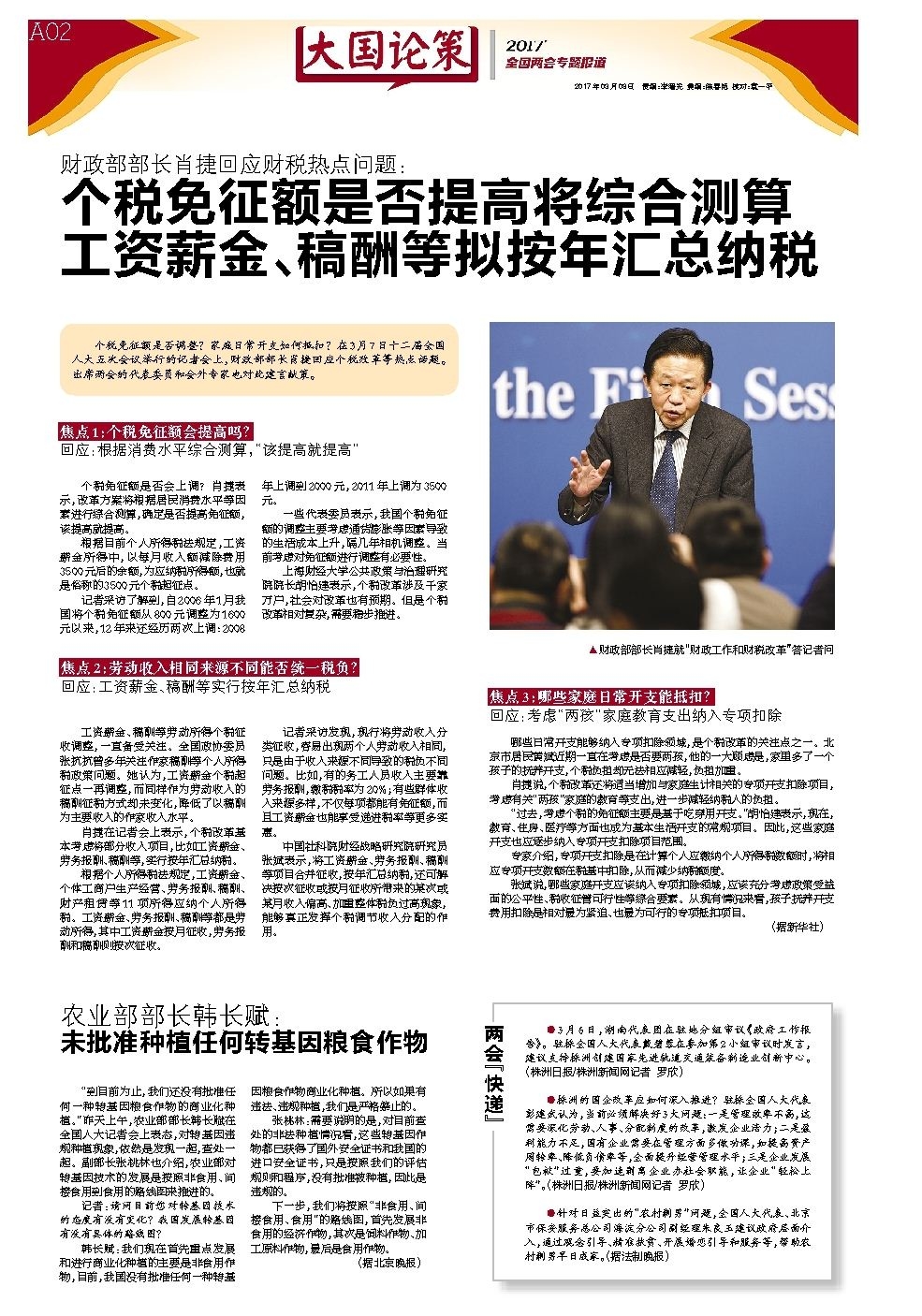 个税免征额是否提高将综合测算 工资薪金、稿酬等拟按年汇总纳税