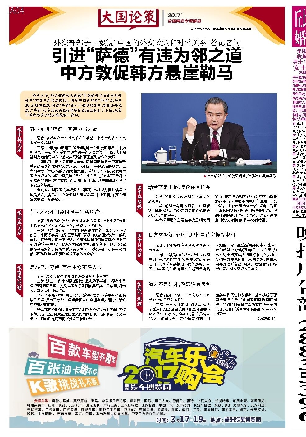 引进“萨德”有违为邻之道 中方敦促韩方悬崖勒马