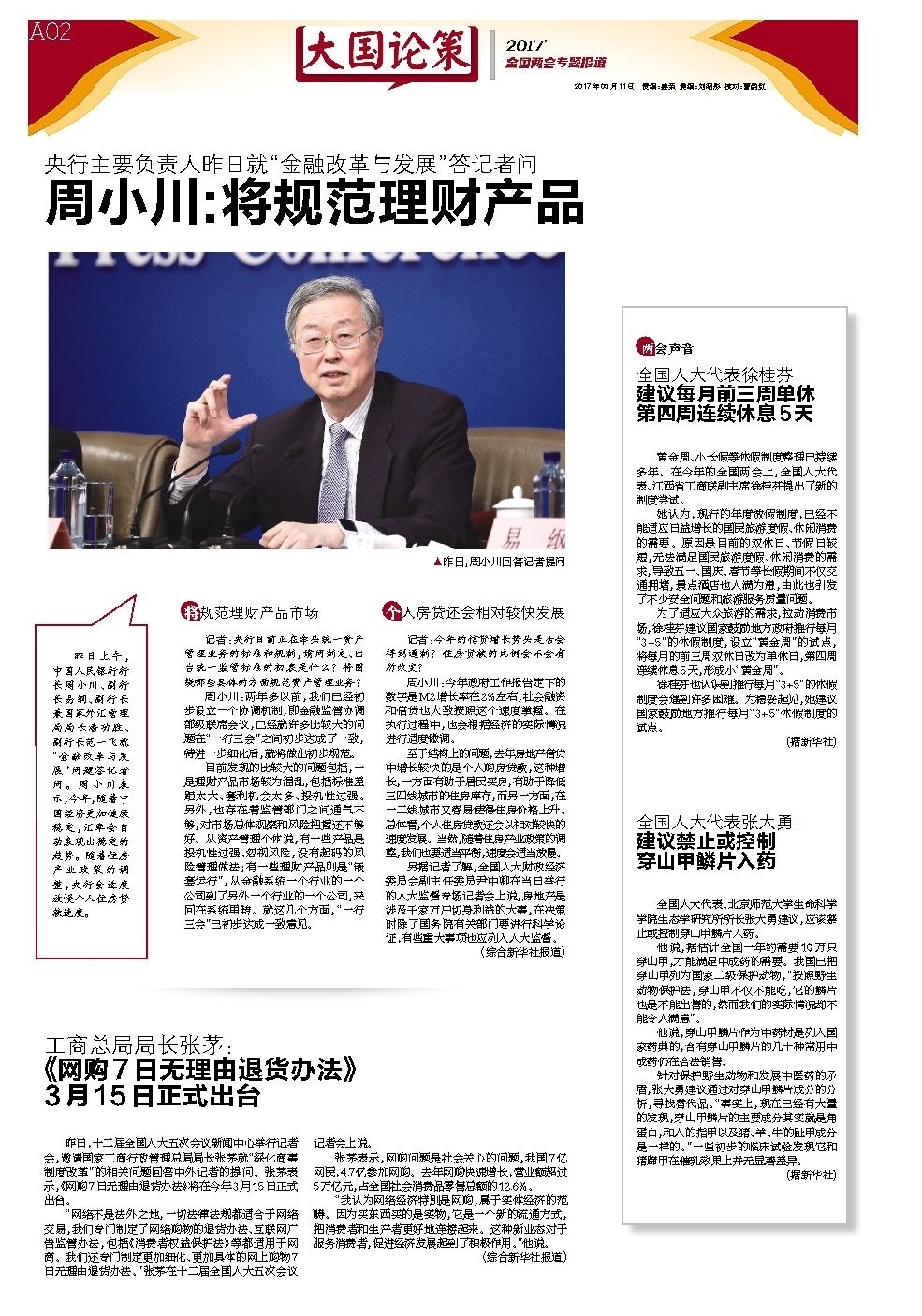周小川:将规范理财产品