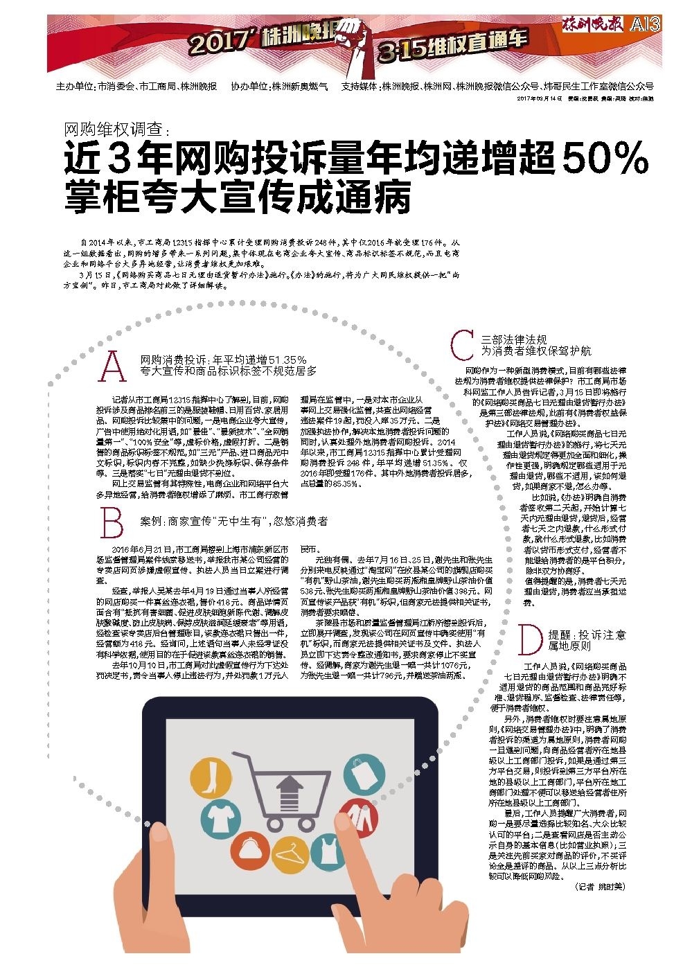 近3年网购投诉量年均递增超50% 掌柜夸大宣传成通病