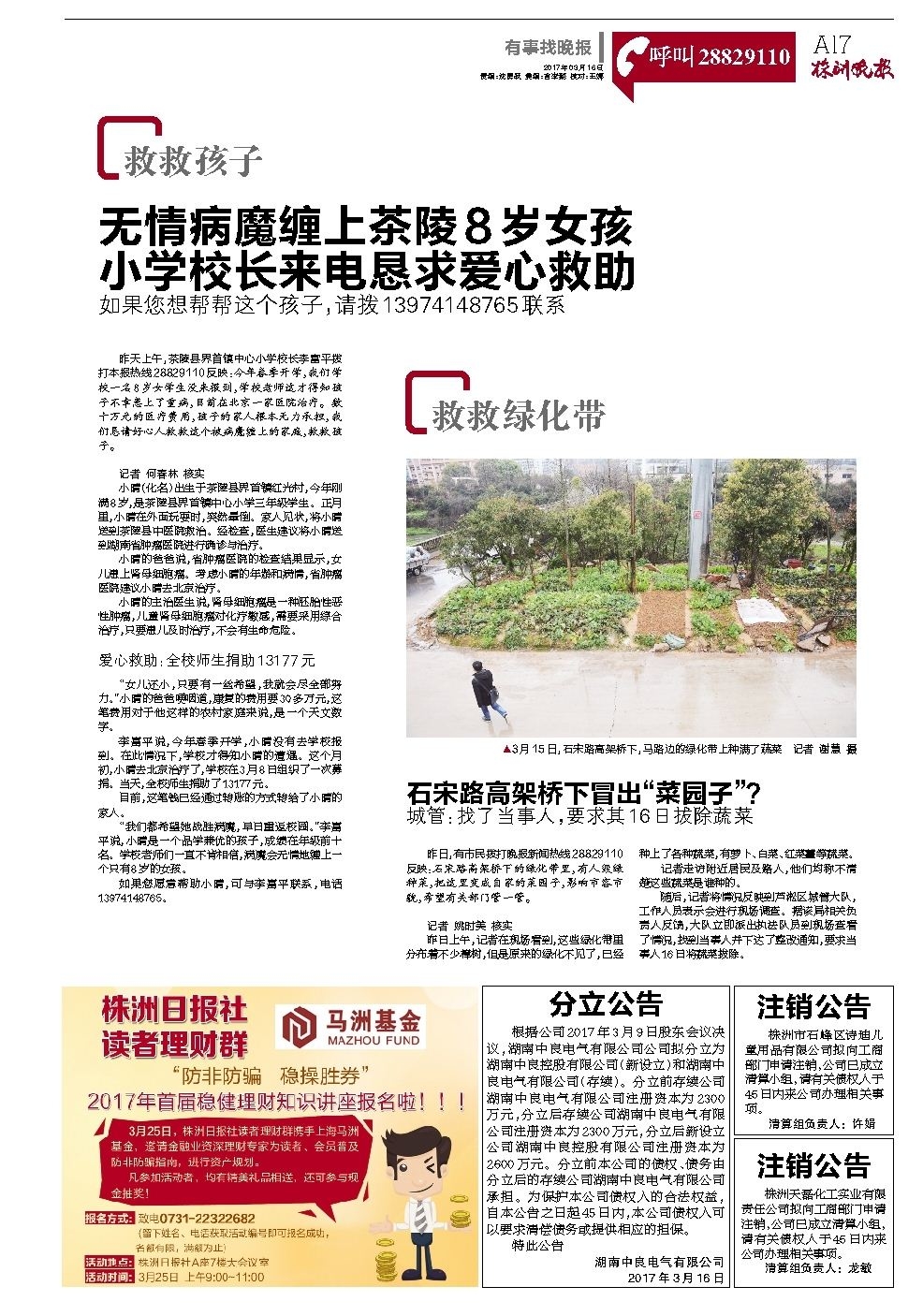 无情病魔缠上茶陵8岁女孩 小学校长来电恳求爱心救助