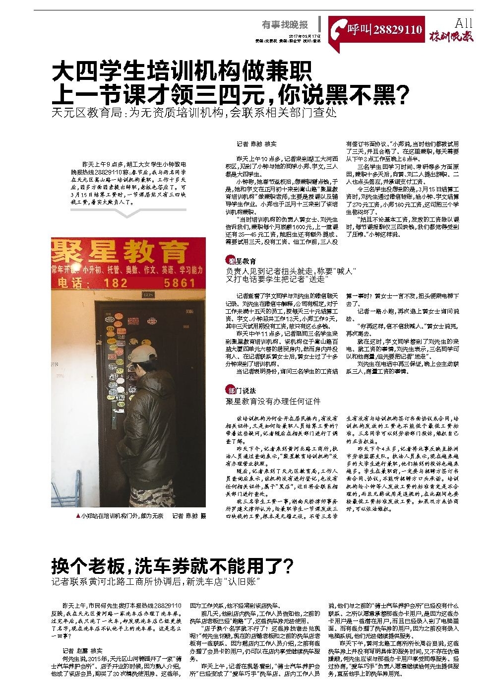 大四学生培训机构做兼职上一节课才领三四元,你说黑不黑?