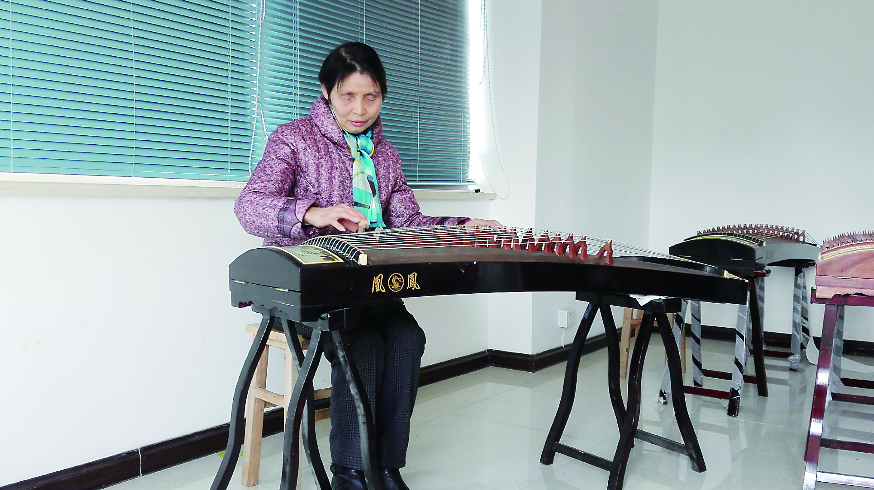 如今,69岁的谭梅英已经能完整地弹10多首古筝曲子,甚至可以脱谱盲弹。