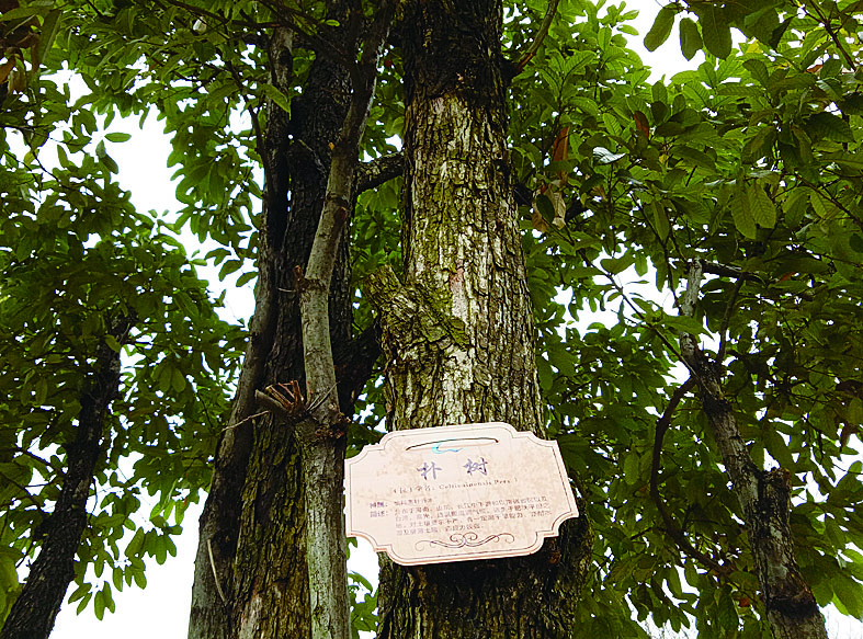 ▲一棵槠树的树牌显示为朴树 记者 谢慧 摄