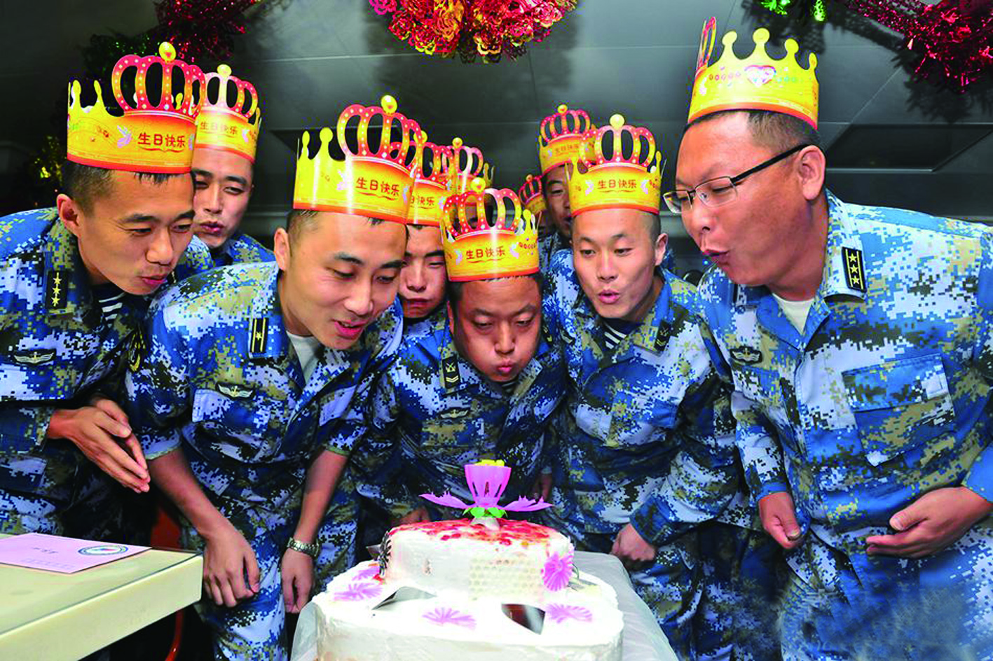 舰上每月为当月生日的官兵举行一个聚会,送上炊事班制作的大蛋糕,并精心为他们准备一张生日贺卡。寿星们一起吹蜡烛、许心愿,还能邀上几名“亲友团”,一起分享美味和喜悦。