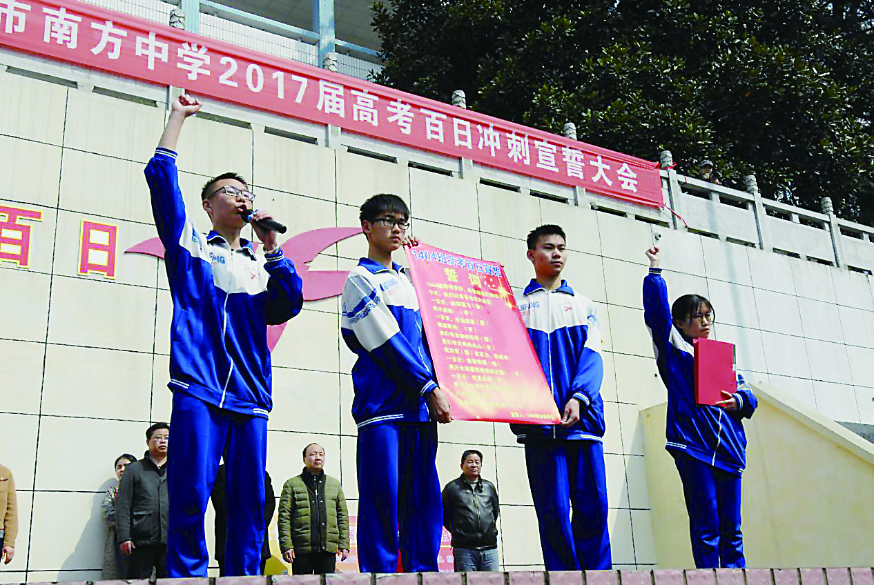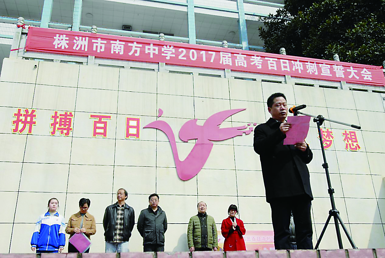 大家有理由坚信,在学校领导正确、科学的领导下,在全体教师的共同努力下,在家长们的倾力支持下,2017届南中学子定会磨亮手中的剑,让锐气冲破云霄,书写属于自己的传奇!