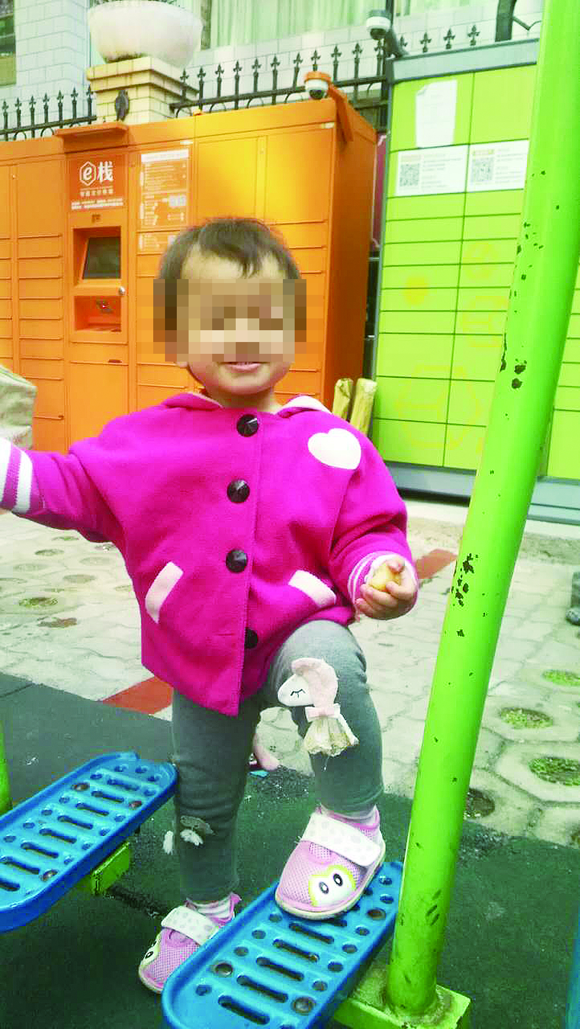 ▲贺文林2岁的女儿,左眼因疾病已经失明 受访者供图