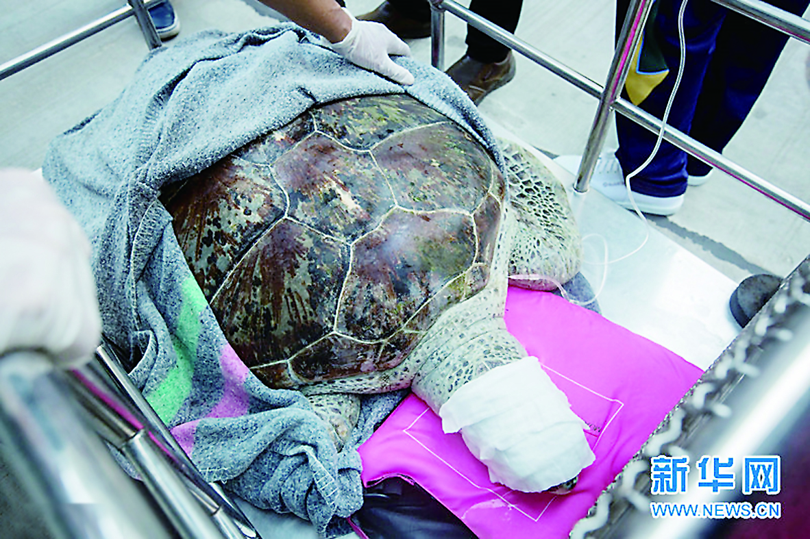前不久,本报报道了泰国一只海龟“Bank”因为误吞千枚许愿硬币而进了医院。近日,泰国朱拉隆功大学兽医院兽医对其进行取出胃部硬币手术。据悉,来自泰国春武里省的“Bank” 常年持续吞食人们为了许愿而投在其生活池塘里的硬币,导致它的胃部膨胀。膨胀的胃部压迫龟壳使龟壳破裂,引起了感染。同时它也遭受着严重的肺部感染,甚至不能正常进食和呼吸。