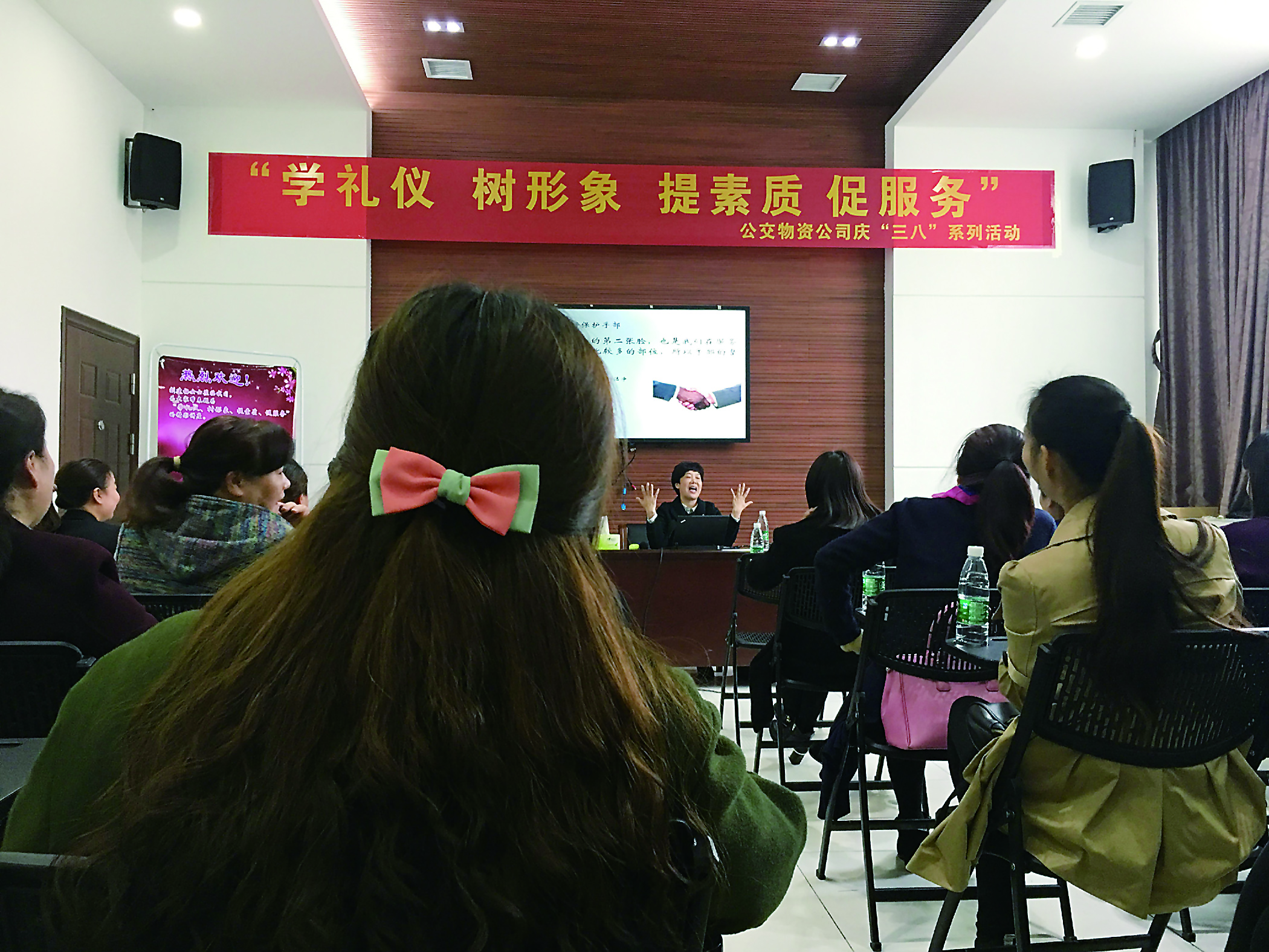 “公交车上小小的公共区域,最能展现公共文明素养。”昨日,市公交物资公司邀请市妇联组织部部长、国家高级礼仪督导师刘建梅,为该公司的女员工讲解公共文明礼仪,为她们送上一份特别的节日礼物。