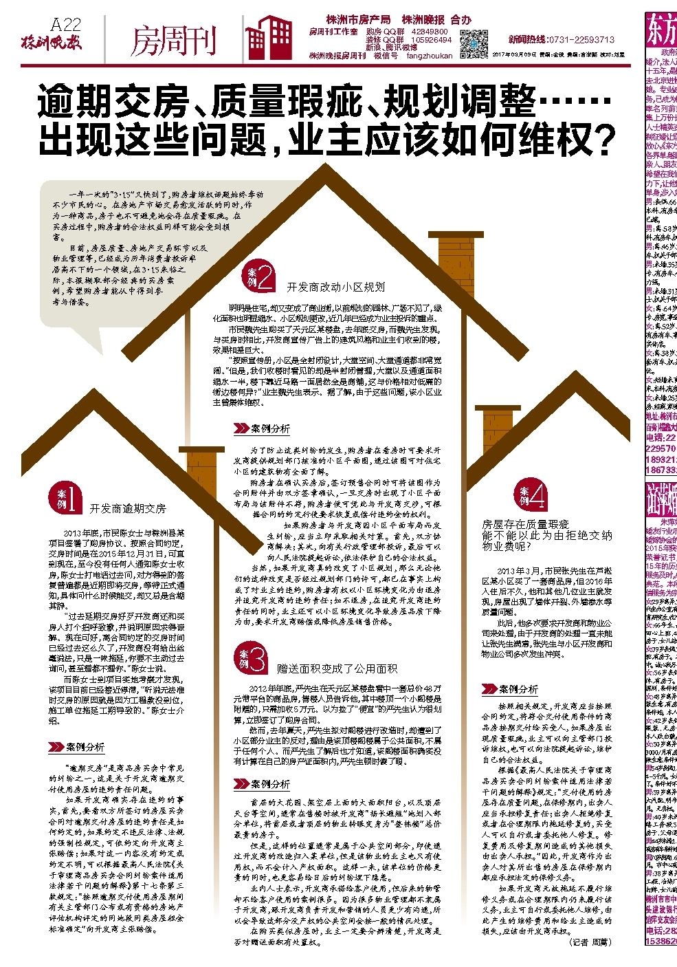 目前,房屋质量、房地产交易环节以及物业管理等,已经成为历年消费者投诉率居高不下的一个领域,在3·15来临之际,本报撷取部分经典的买房案例,希望购房者能从中得到参考与借鉴。