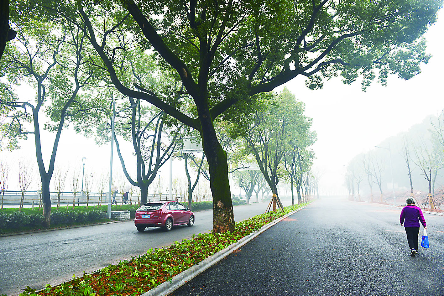 昨日上午,记者在现场看到,在新修建的滨江道路正中间,有一排老樟树,并修建了树池进行保护,路边还有大量的玉兰树也被就地保护,走在这条新修建的道路上,看到郁郁葱葱的树木,心旷神怡。