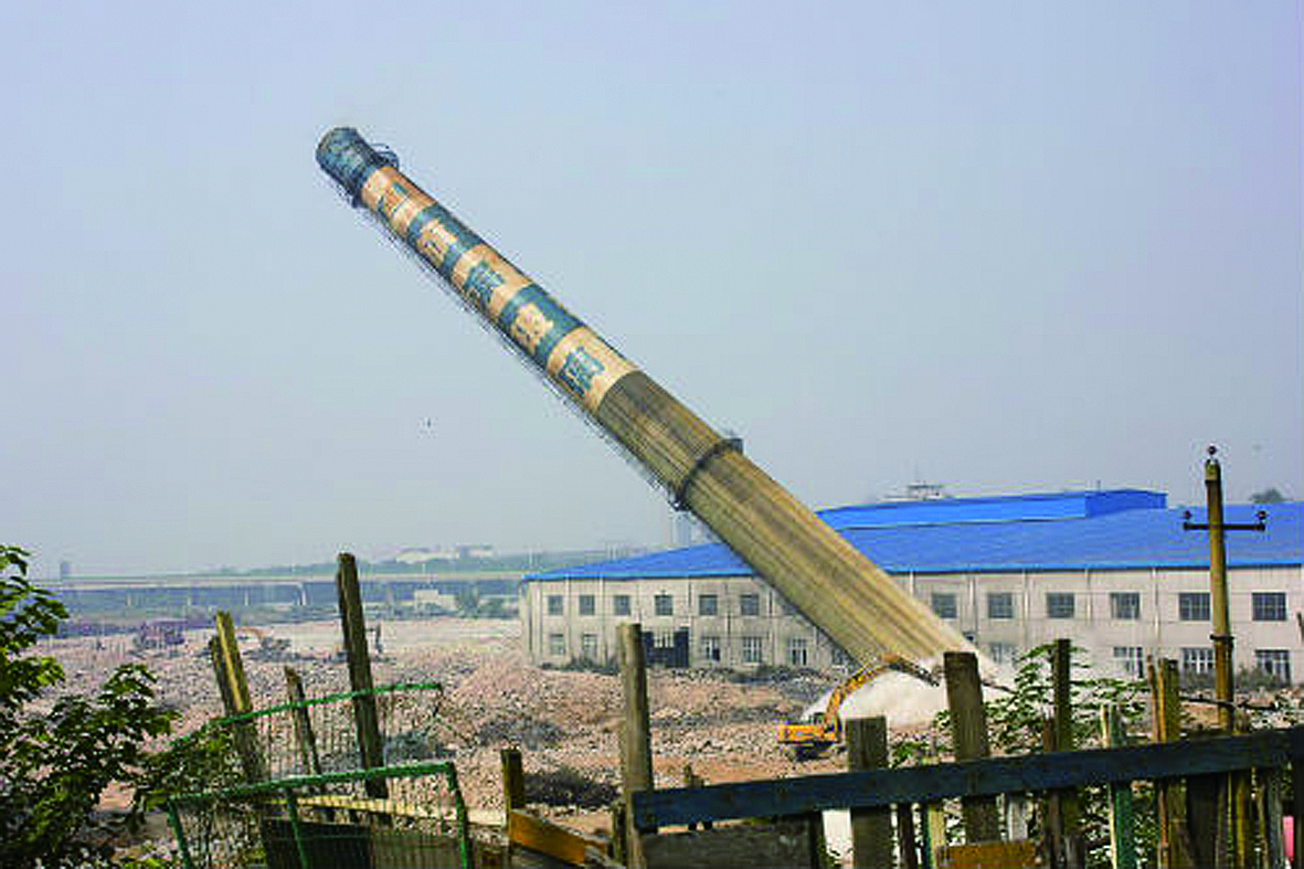▲旗滨玻璃厂烟囱爆破拆除 资料图
