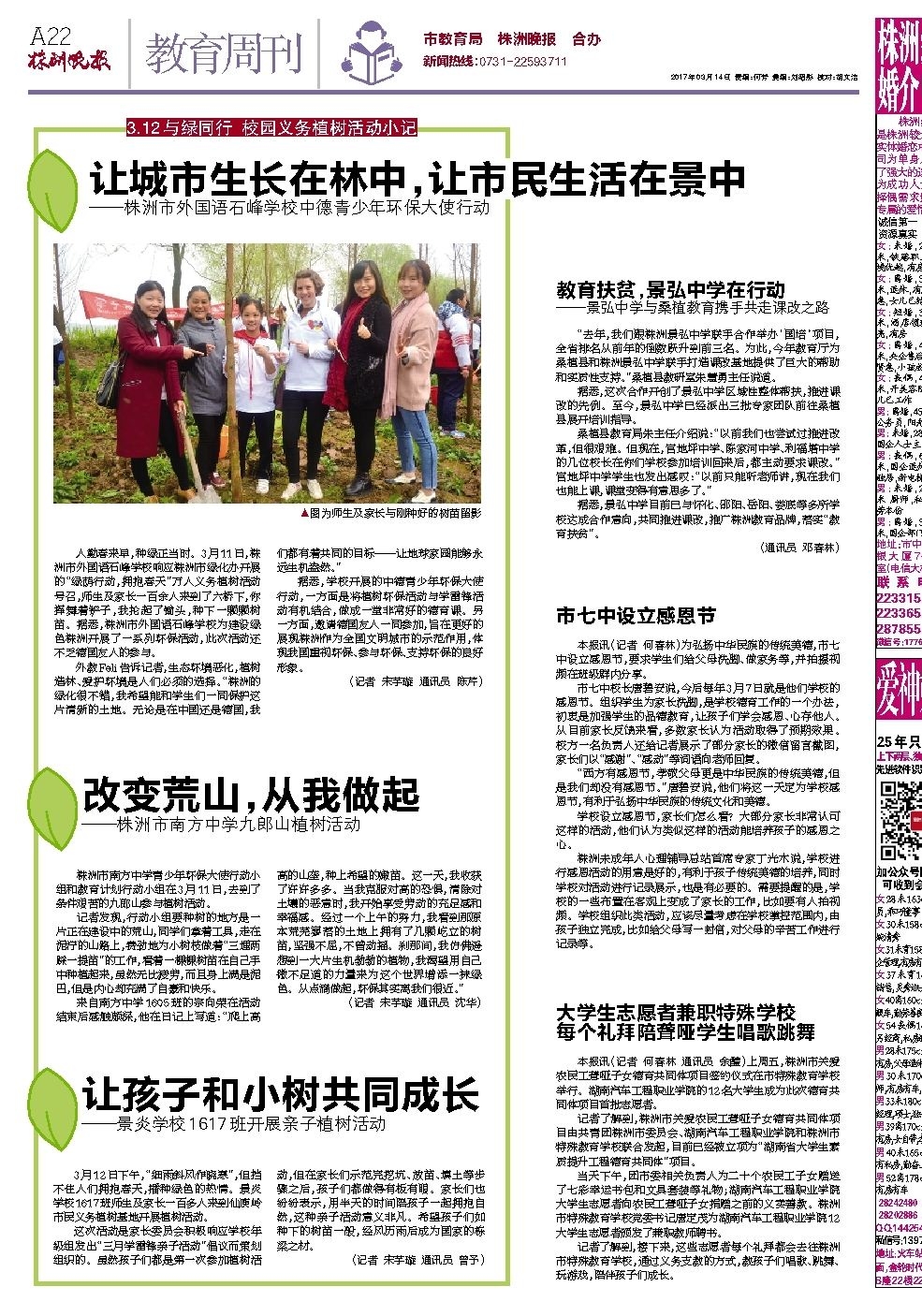 3月12日下午,“细雨斜风作晓寒”,但挡不住人们拥抱春天,播种绿色的热情。景炎学校1617班师生及家长一百多人来到仙庾岭市民义务植树基地开展植树活动。