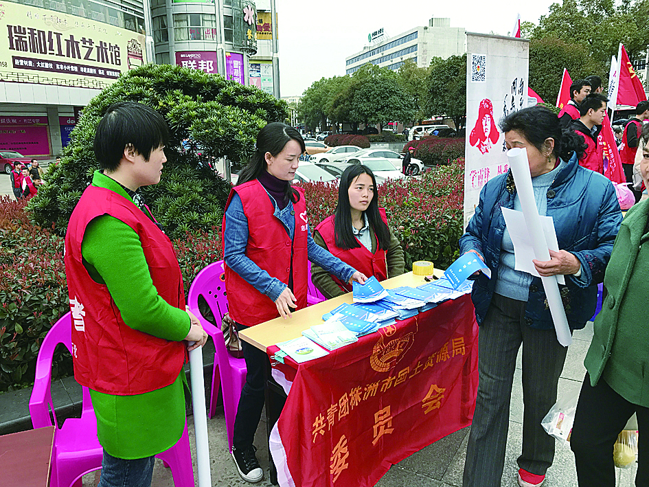 通过摆放宣传版面、设立法制宣传咨询台、散发宣传彩页、派发国土资源法律法规知识书籍和新版株洲市地图等形式,志愿者们向往来群众宣传国土资源相关法律法规,为前来咨询国土业务的群众提供专业详尽的解答。