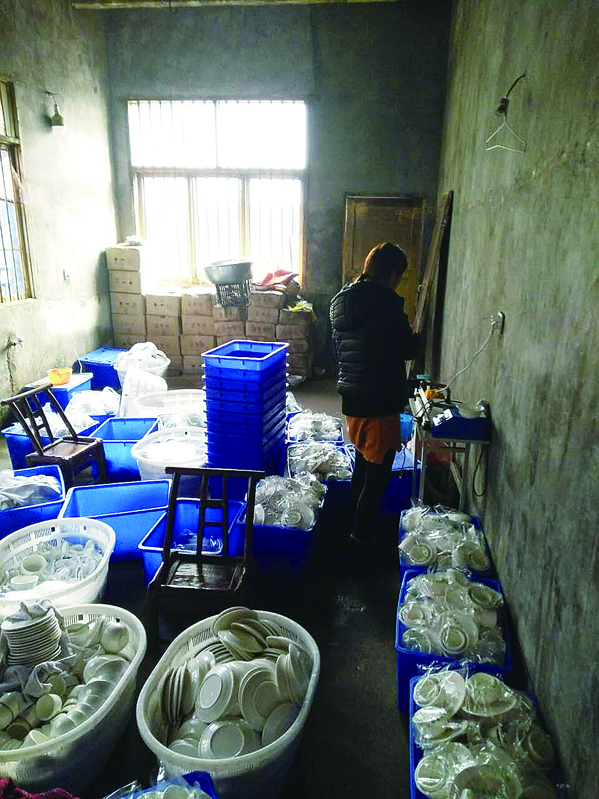 洗洁精洗过的碗筷风干后过塑如此“卫生餐具”竟被送上餐桌