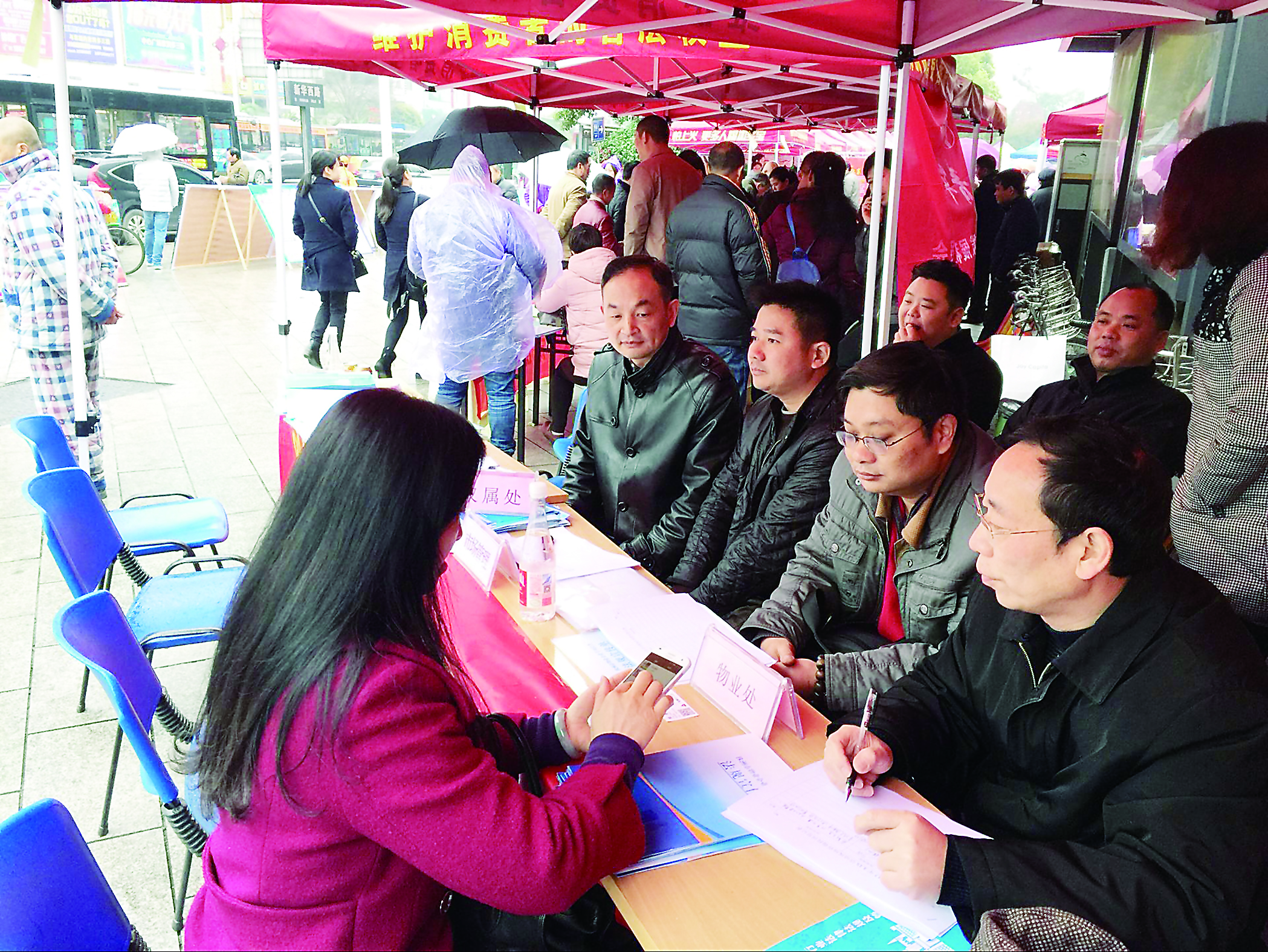昨天是3·15消费者权益日,为增强消费者法律意识,打击房地产行业违法违规行为,规范房地产市场秩序,昨天上午,市房产局开发办、权属处、监察大队、物业处等众多科室在中心广场大楼前,现场发放房地产法律法规宣传手册,接受市民投诉咨询。