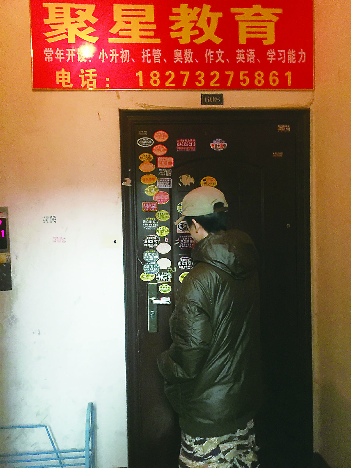 ▲小郑站在培训机构门外,颇为无奈 记者 陈驰 摄