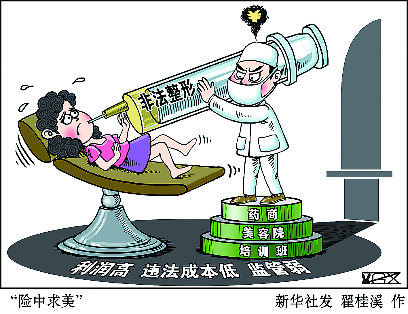 新华社记者从广东省第二人民医院整形美容科了解到,近一年来,该科室接诊因美容失败导致严重并发症的患者平均每月达18人,比上年同期上升70%多。由于利润高、违法成本低、监管弱等因素,美容整形行业已形成包括药商、美容院、培训班等在内的非法产业链。