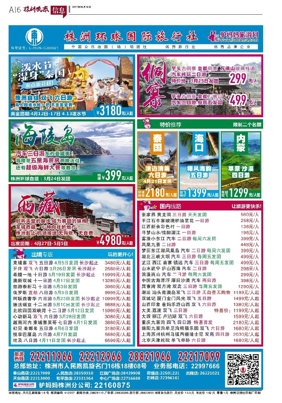 • 本报地址:天元区新闻路18号 邮政编码 412007 新闻热线:28829110 广告部:28835396 发行部:28823900 本报自办发行 月定价13.5元 年定价162元 零售1元 株洲日报社印刷厂印刷