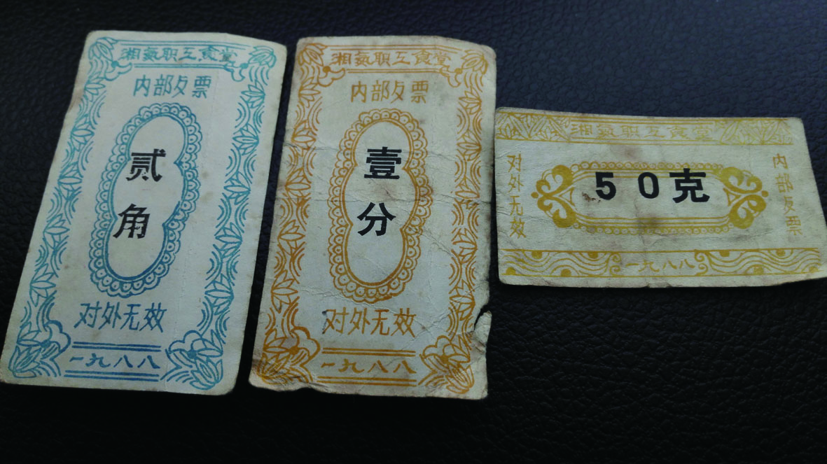 “关于这几张餐票是什么意思,上午我们还讨论了一下:50克是一两饭的意思。而当时的米粉是一角三分钱一两,食堂自己做的米粉,买回去自己煮。”刘先生说。