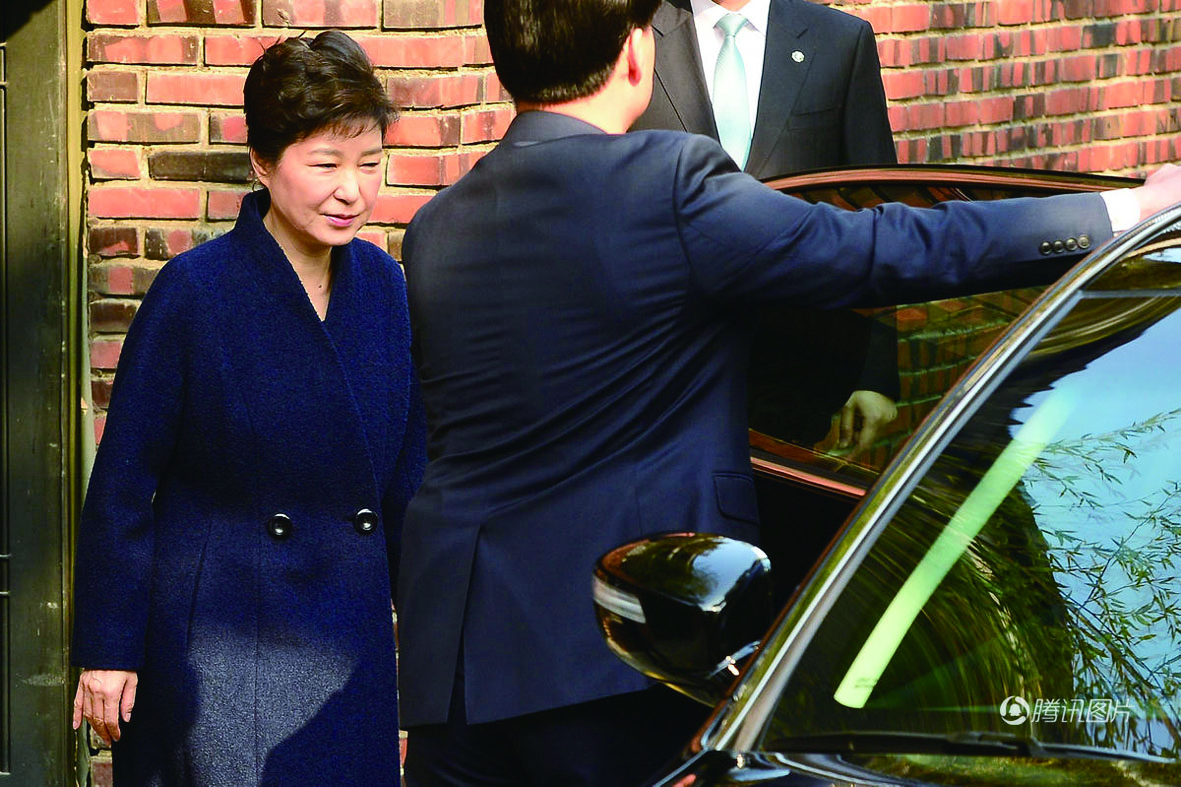 ▲朴槿惠从私宅出发前往检察机关