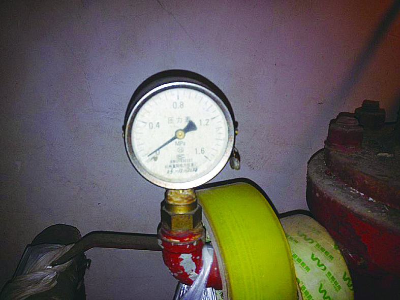 ▼位于楼栋一楼的消防分水管道,水压表显示几乎为0