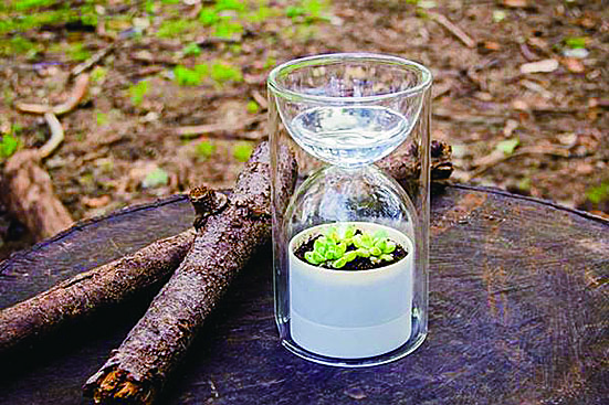 对于喜欢在家里种一些小盆栽,但又时常忘记浇水的人来说,这款Livesglass温室沙漏式花盆就特别实用。设计师的灵感来源于沙漏,将水倒入沙漏的上层,水会慢慢地滴入盆栽里,让植物能时刻得到滋润,又不会过度浇灌,倒满一次水足够使用一星期。这款花盆的体积小巧,适合种植苔藓和迷你植物,在客厅、卧室放上一个,既是盆栽也是相当不错的装饰品。
