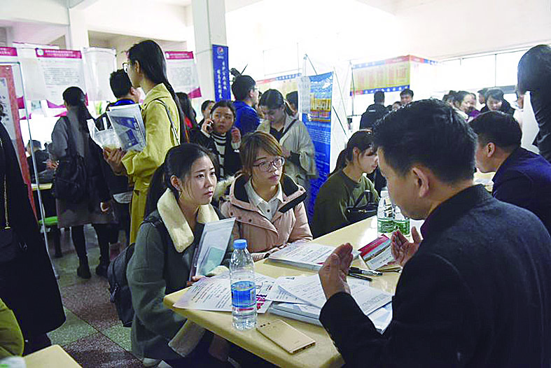 ▲供需见面会上,学生向用人单位咨询招聘详情 受访者供图