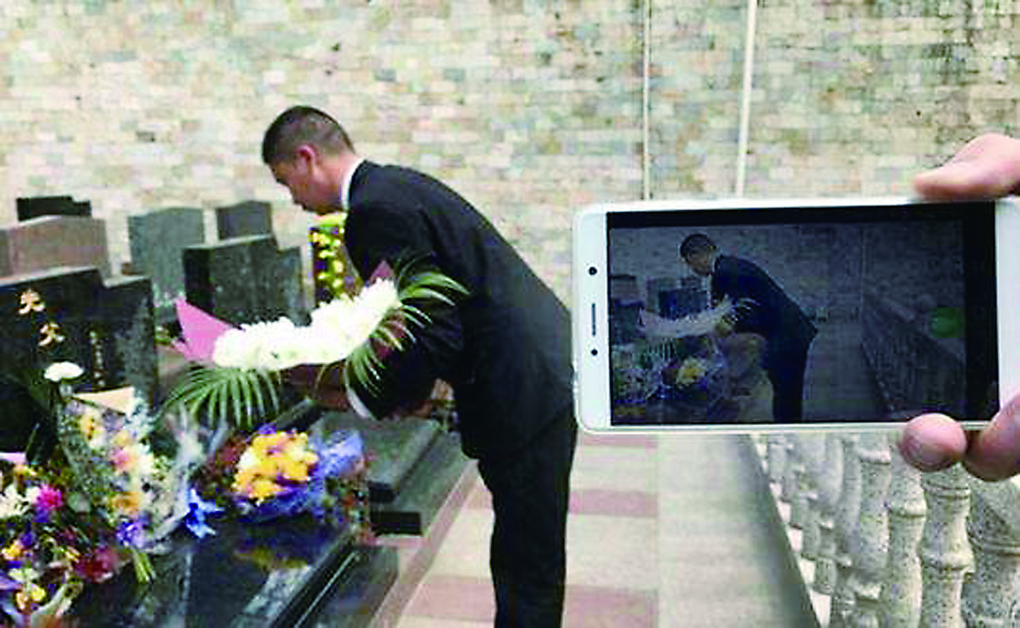 ▲南京雨花台功德园推出“代客扫墓”服务,微信直播全程