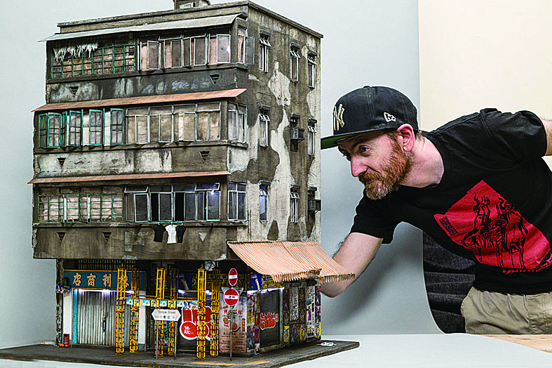 艺术家对细节的还原十分真实,就连屋顶上的一张小桌子、桌上的烟盒和报纸,甚至报纸上的文字都被真实还原。作为一位模板艺术家,Joshua从事这样的创作已经有两年多的时间,一般Joshua会在实地拍摄几张照片作参考,然后使用纤维板、纸板、塑料等开始搭建模型,之后再用各种画笔装饰外观等细节。Joshua最新的作品——一座香港的四层楼房,耗费了他近3个月才完成。