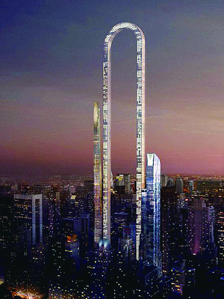 1219米 纽约计划建世界最长建筑 Oiio建筑工作室将在纽约曼哈顿建造一座倒U型大楼,最高处呈圆弧,像一枚回形针。据悉,这座高楼将长达到4000英尺(约1219.2米),被称为是“世界上最长建筑”,打破了曼哈顿市中心的天际线。 该“U”型建筑矗立在有“亿万富豪区”之称的纽约最昂贵地段第57大街。此前,Oiio工作室解释说:“纽约区划法创造了一套特殊法则,促使开发商不断通过建造高楼来提高自己的声望。但是如果我们用长度取代高度呢?那么我们就只能改变建筑的结构,在曼哈顿建造一个世界上最长的建筑。” 从项目的概念图中可以看出,这座建筑的一大特点就是运行其中的电梯不仅可以横向运行,还能沿着弧形或环状路线运行。路径调整系统使两个立柱上下横向连接,刚好形成一个回环。