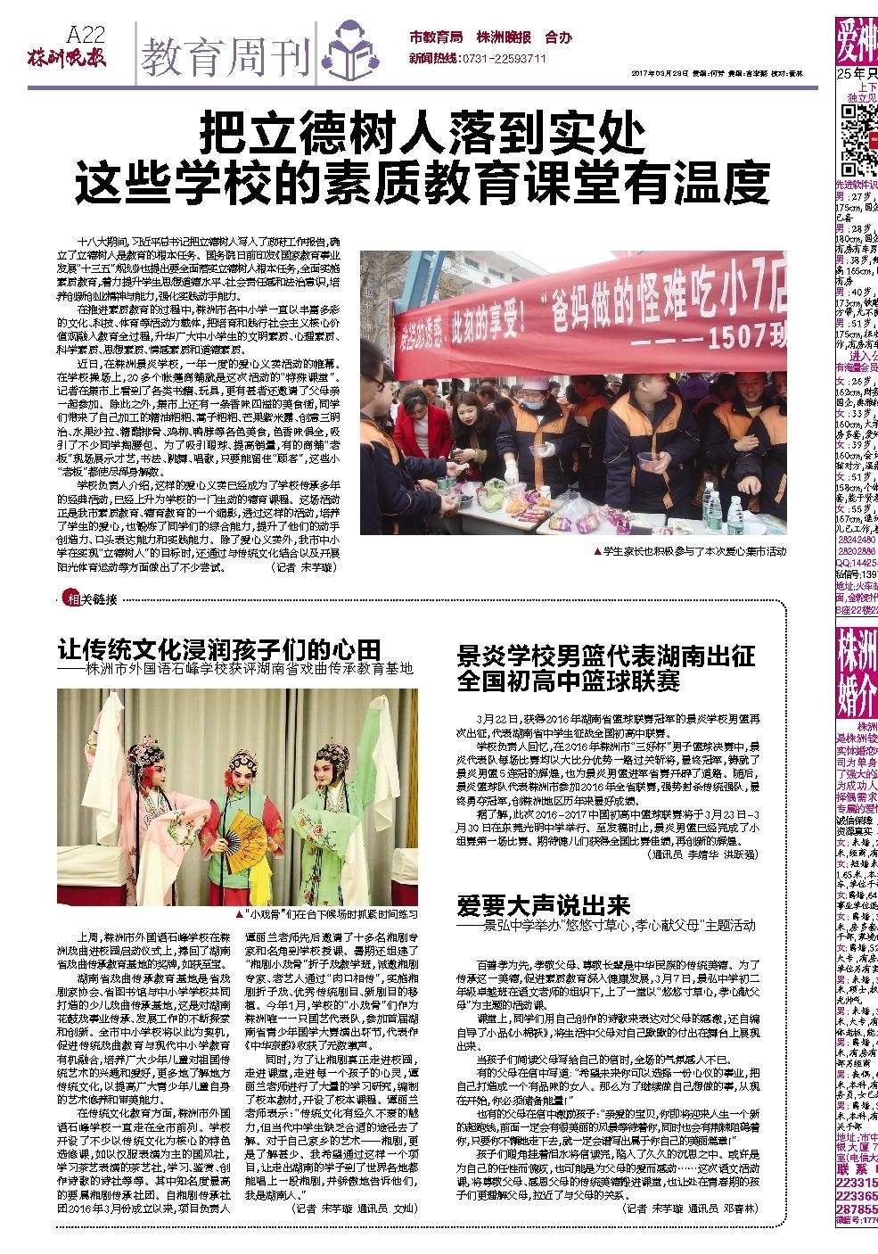 百善孝为先,孝敬父母、尊敬长辈是中华民族的传统美德。为了传承这一美德,促进素质教育深入健康发展,3月7日,景弘中学初二年级卓越班在语文老师的组织下,上了一堂以“悠悠寸草心,孝心献父母”为主题的活动课。